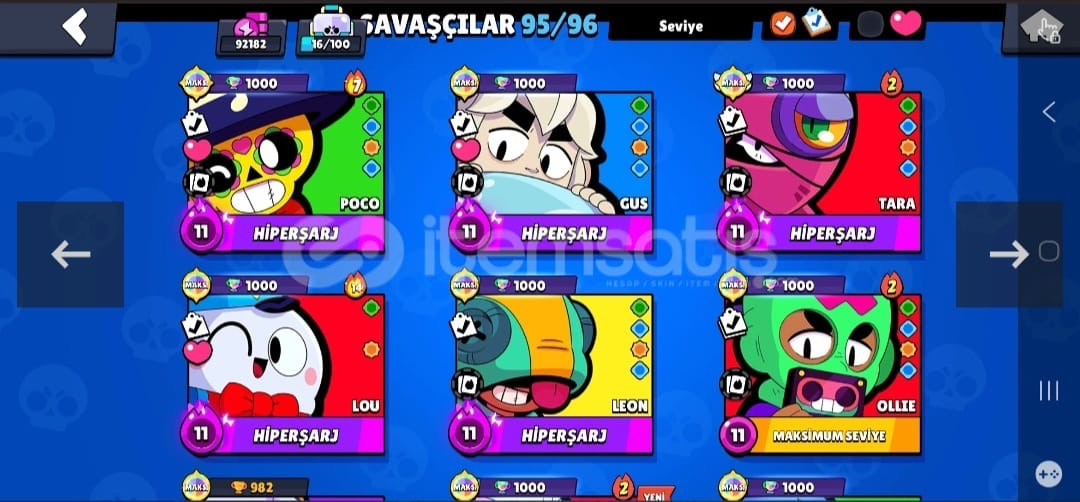93K 96 KARAKTER⚡️VAR 270 TEN FAZLA SKIN BULUNUYOR 19 ÜNVAN MEVCUT⚡️96 KARAKTER 29 MAX KARAKTER⚡️28 HİPERŞARJ 314 ELMAS +20K MÜCEVHER