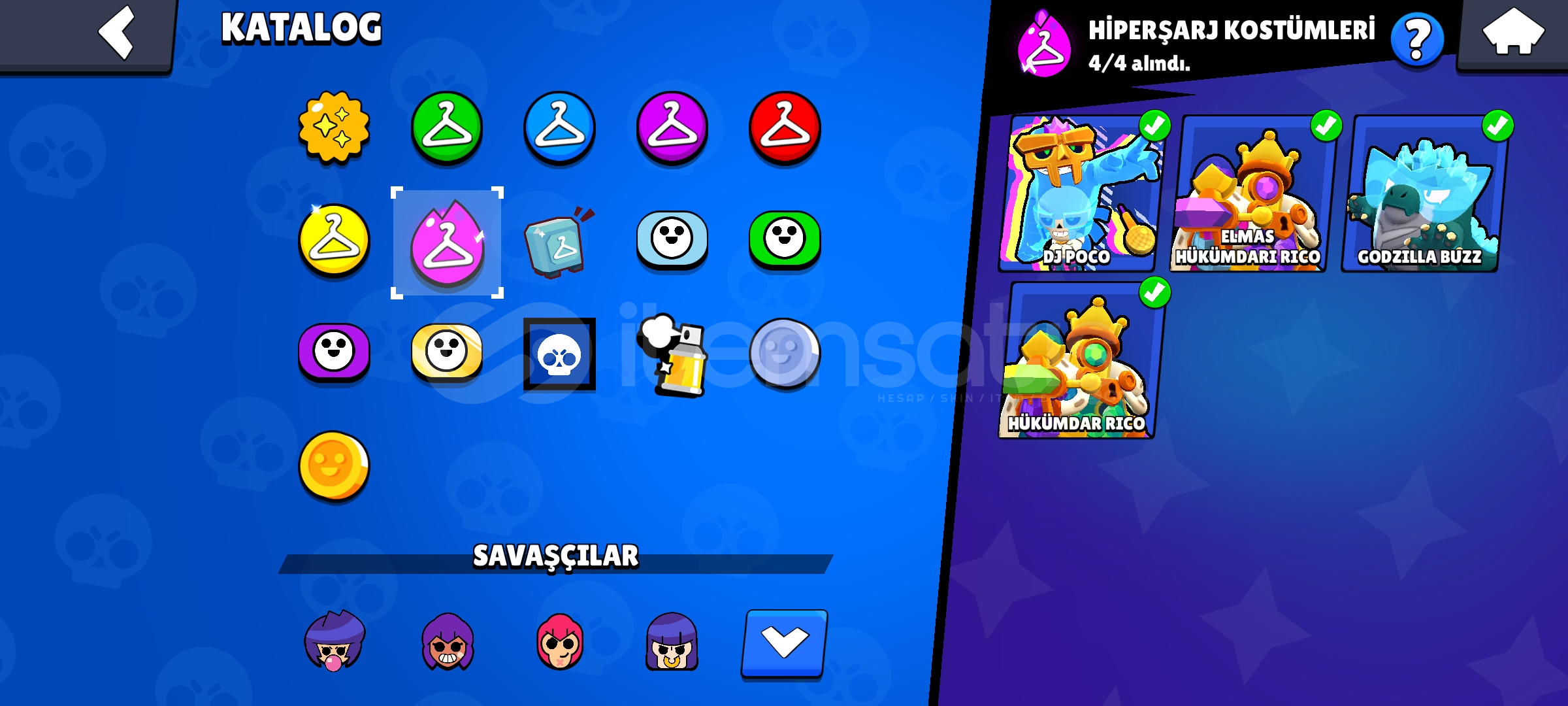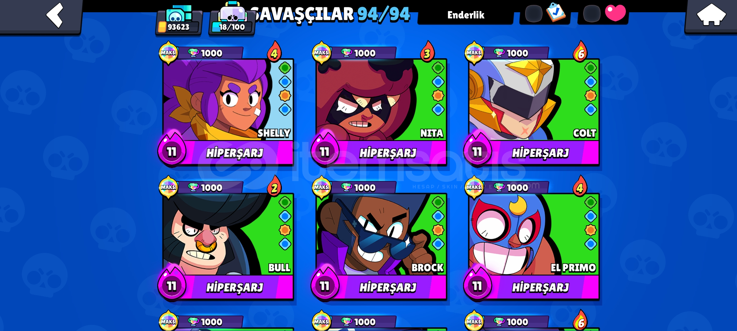 93.000 KUPALI BRAWL STARS HESABI10 DAN FAZLASI EFSANEVİ OLMAK ÜZERE 300 DEN FAZLA KOSTÜM BULUNMAKTADIR.ÇOĞUNLUĞU 11 SEVİYE OLAN 94 KARAKTER BULUNMAKTADIR.ALAN ŞAHIS İÇİN SUPERCELL ID E POSTA DEĞİŞİMİ YAPILIR.