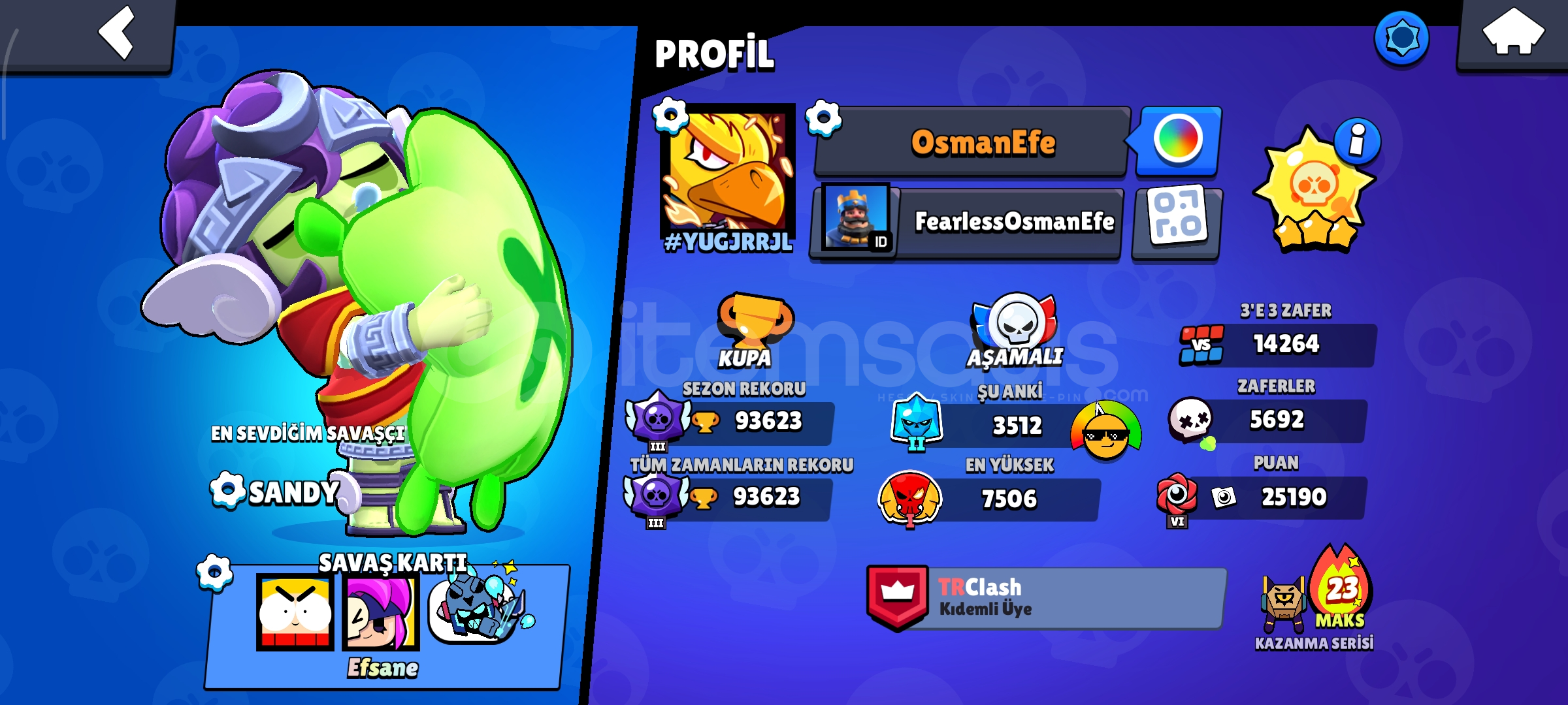 93.000 KUPALI BRAWL STARS HESABI10 DAN FAZLASI EFSANEVİ OLMAK ÜZERE 300 DEN FAZLA KOSTÜM BULUNMAKTADIR.ÇOĞUNLUĞU 11 SE...