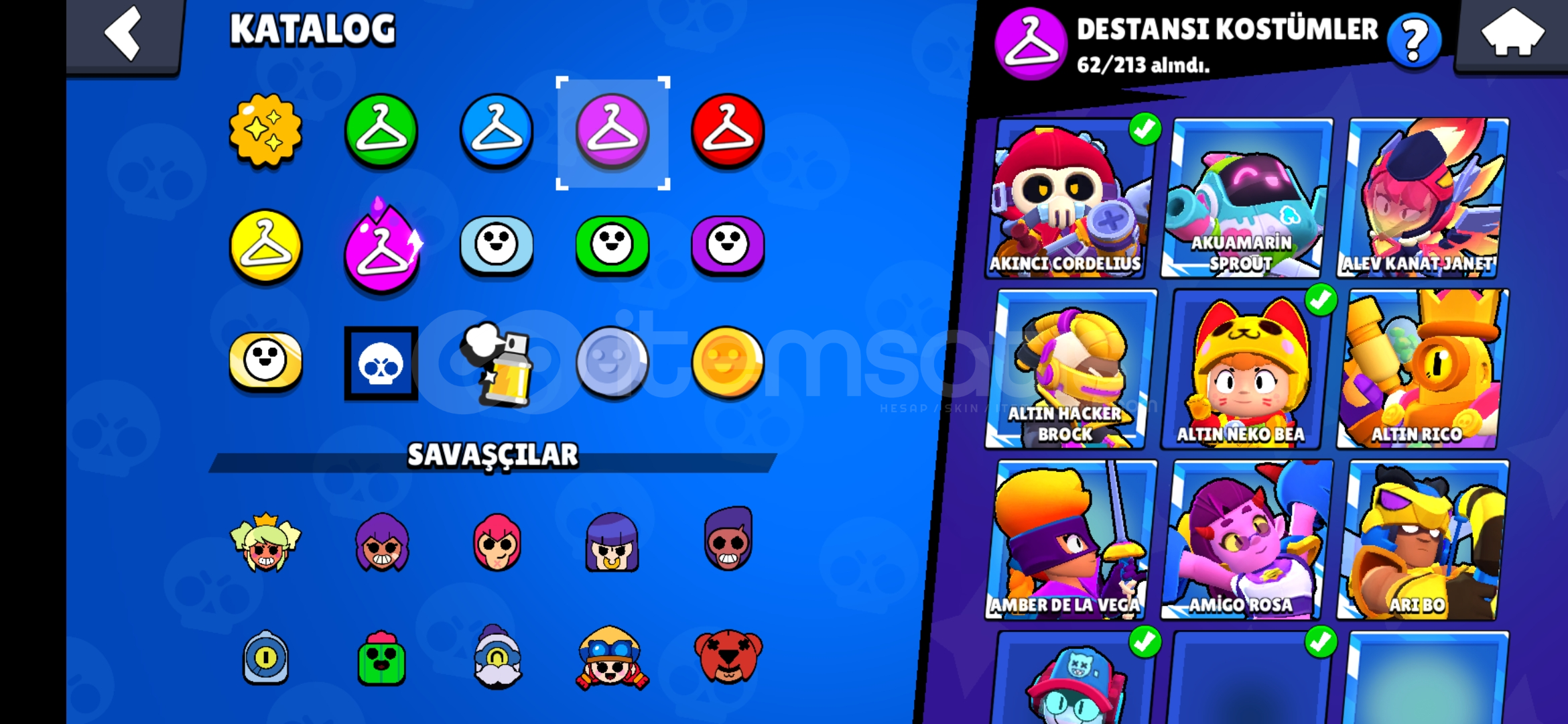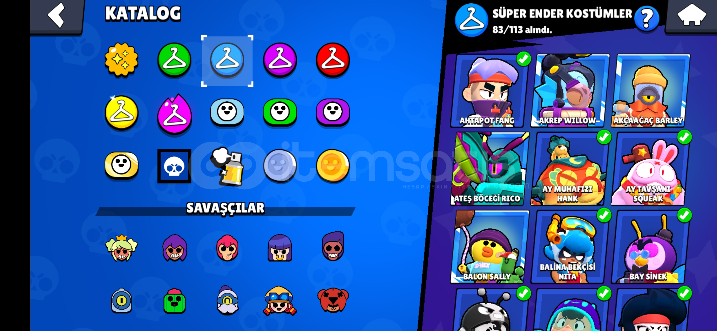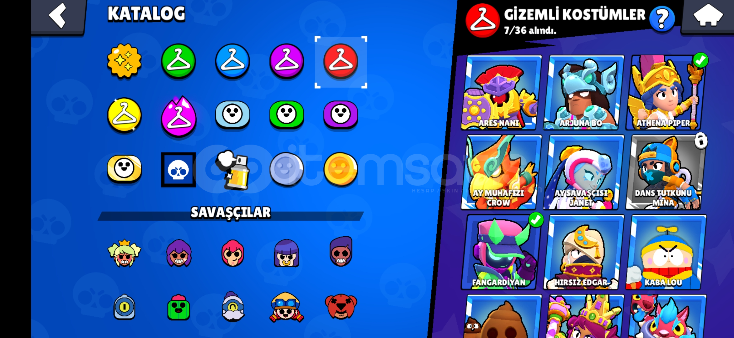 67k kupa, 11k 3v3, ay şöhreti 94 karakterli eski nadir bazi kostumleri bulunduran efsanevi ve gizemli 7ser kostum bulunan ucuza hesap ayrica 3k kupa cr ve 12 belediye binasi coc hesabiyla birlikte verilir
