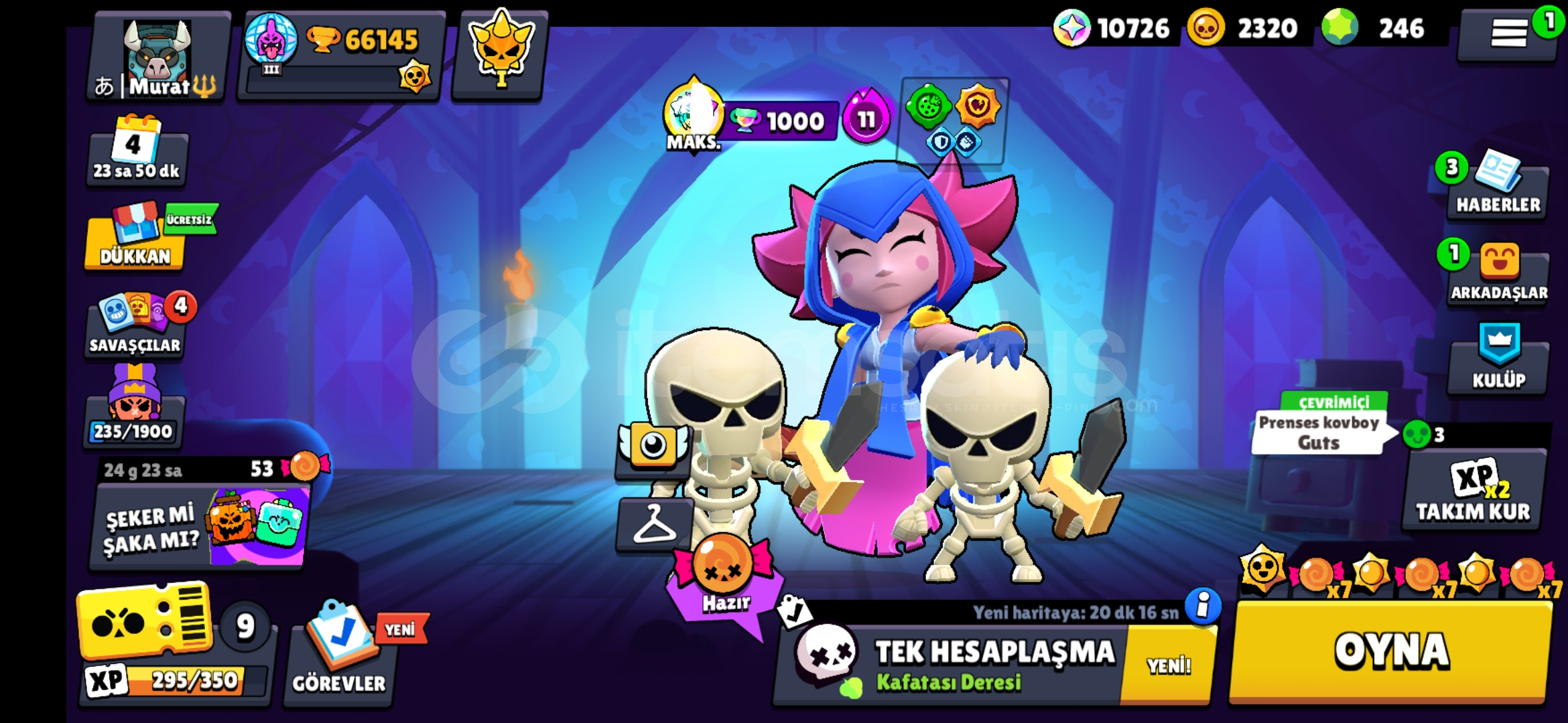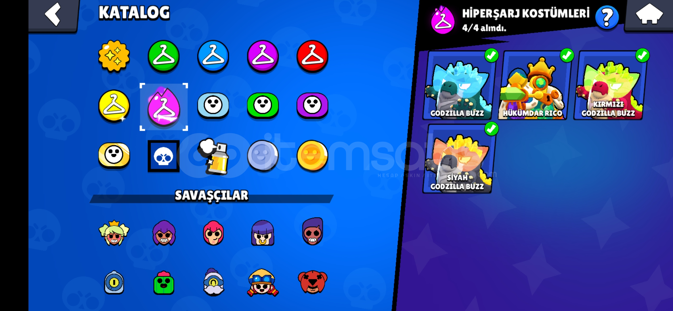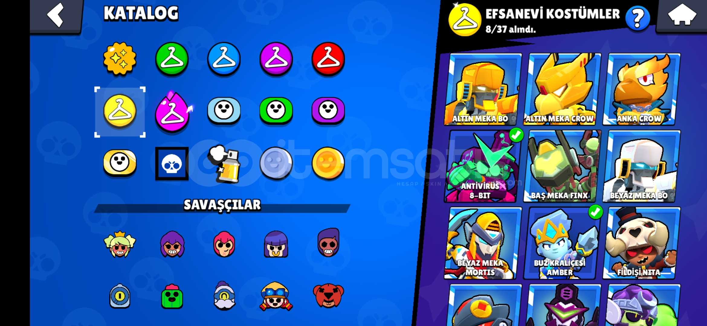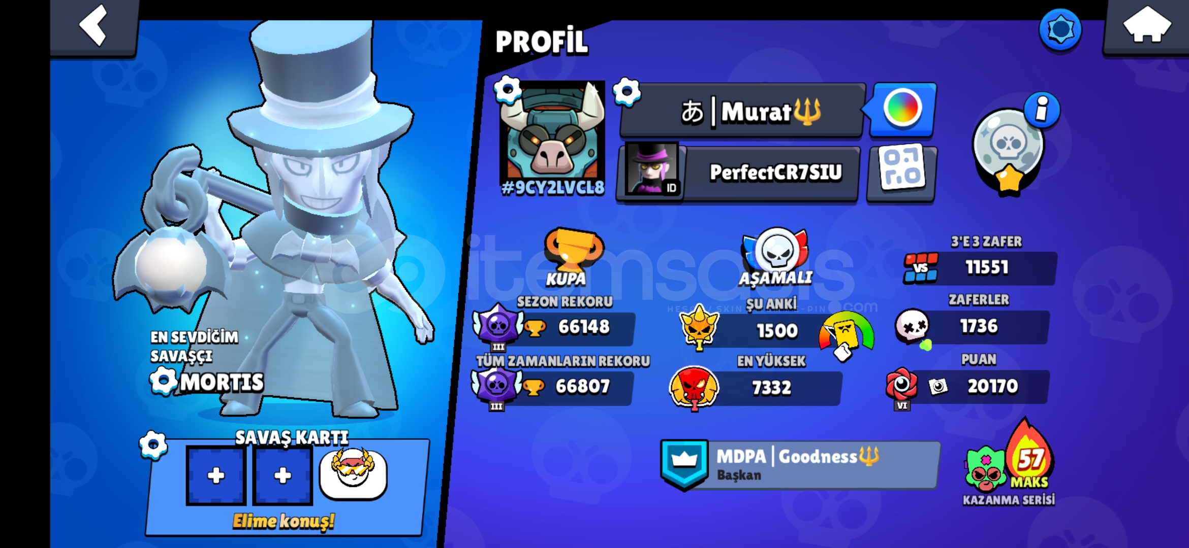 67k kupa, 11k 3v3, ay şöhreti 94 karakterli eski nadir bazi kostumleri bulunduran efsanevi ve gizemli 7ser kostum bulunan ucuza hesap ayrica 3k kupa cr ve 12 belediye binasi coc hesabiyla birlikte verilir