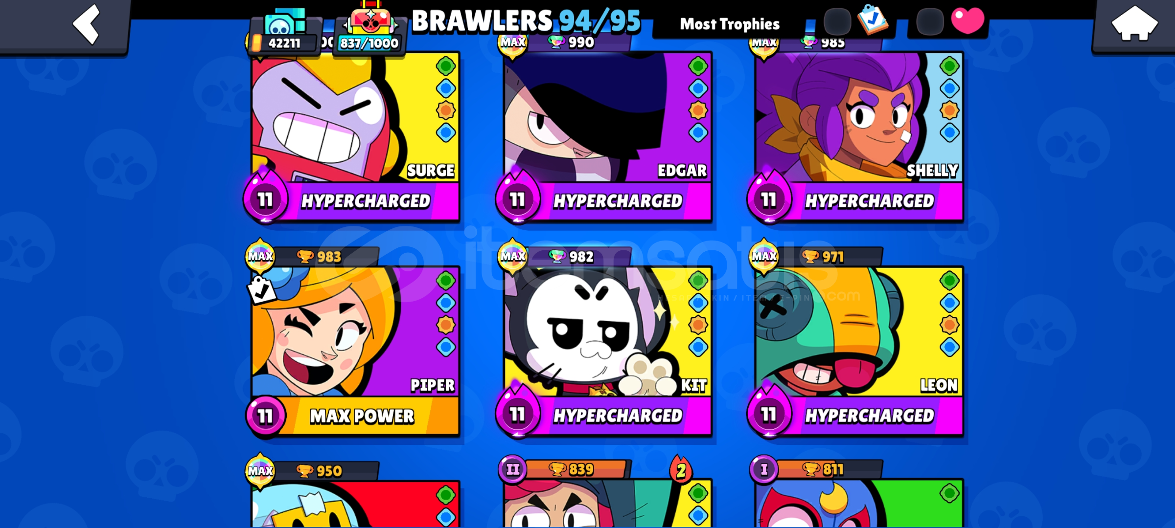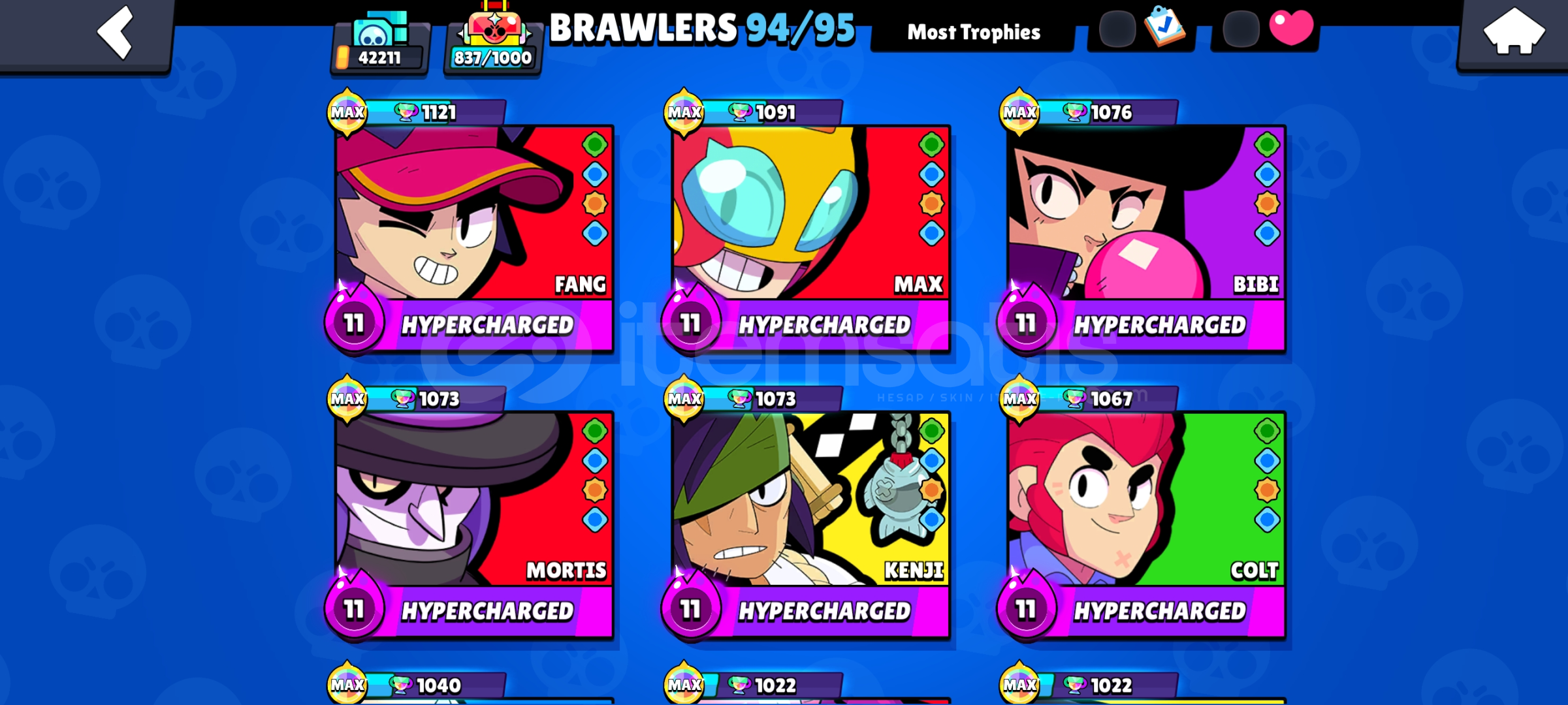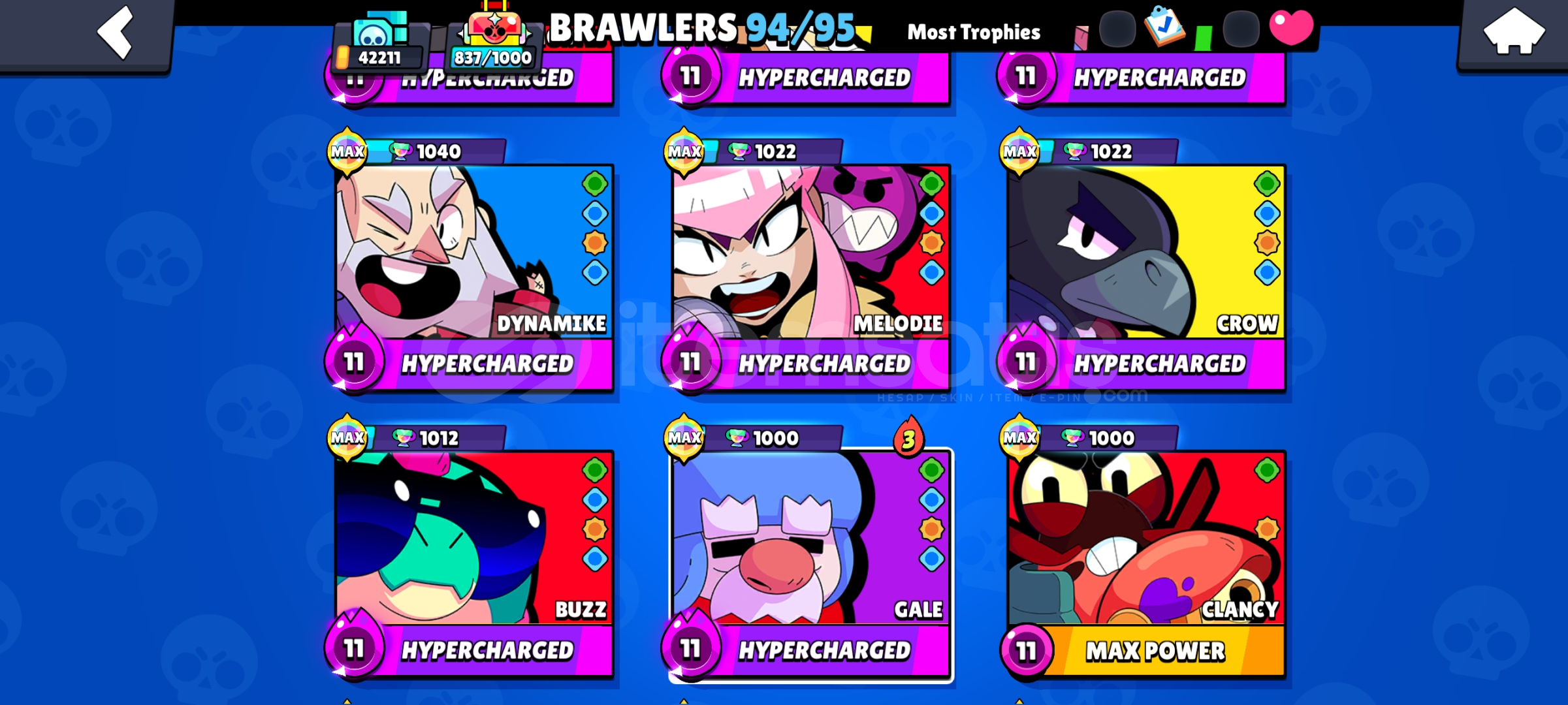 Hiperşarj SkinleriParlak MortisGodzilla Buzz(2x)Beatmatcher PocoSeytan MortisEfsanevi SkinlerSuper Lightyear SurgeKis Kralicesi AmberMythic(11)en iyiler assagidaGraffiti Mina(Butun Varyasyonlar)Kuflu MikeFanguardCehennem BullEpic(51)Super Rare(79)Rare(60)1000+ KUPALARMortisFangDynamikeColtShellyEdgarKitBibiKenjiGalePiperLeon