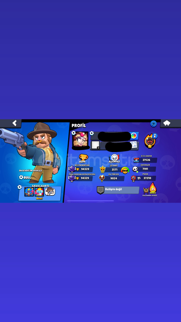 🔹 En Yüksek Kupa:94400🔹 Güncel Kupa:94400🔹 3v3:27526🔹 Karakter Sayısı:96🔹 11 Seviye Say...