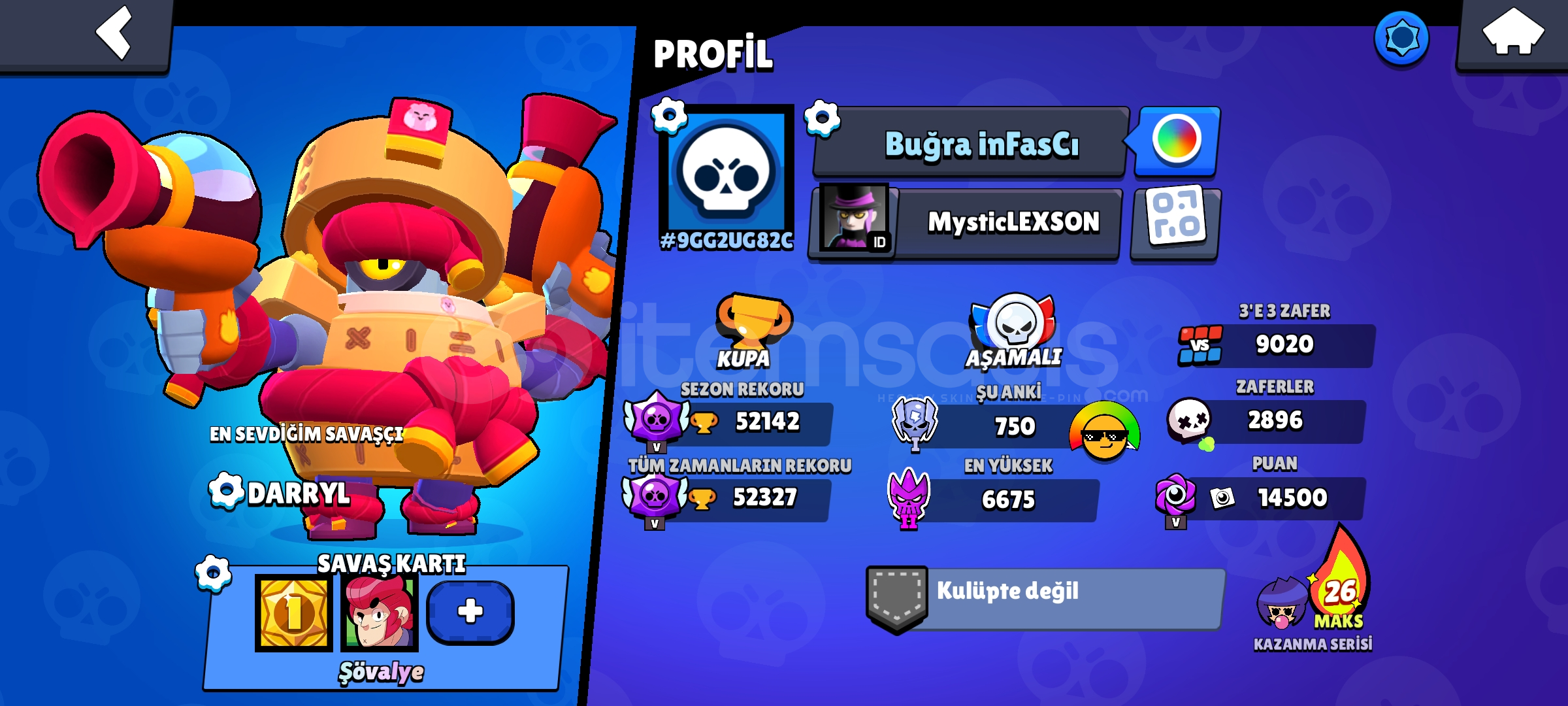 Brawl Stars hesabı 52k kupası var 95 karakterli 44 ü Max level 250+ fazla kostümü var 2019 hesabı nadir ve emek hesabı