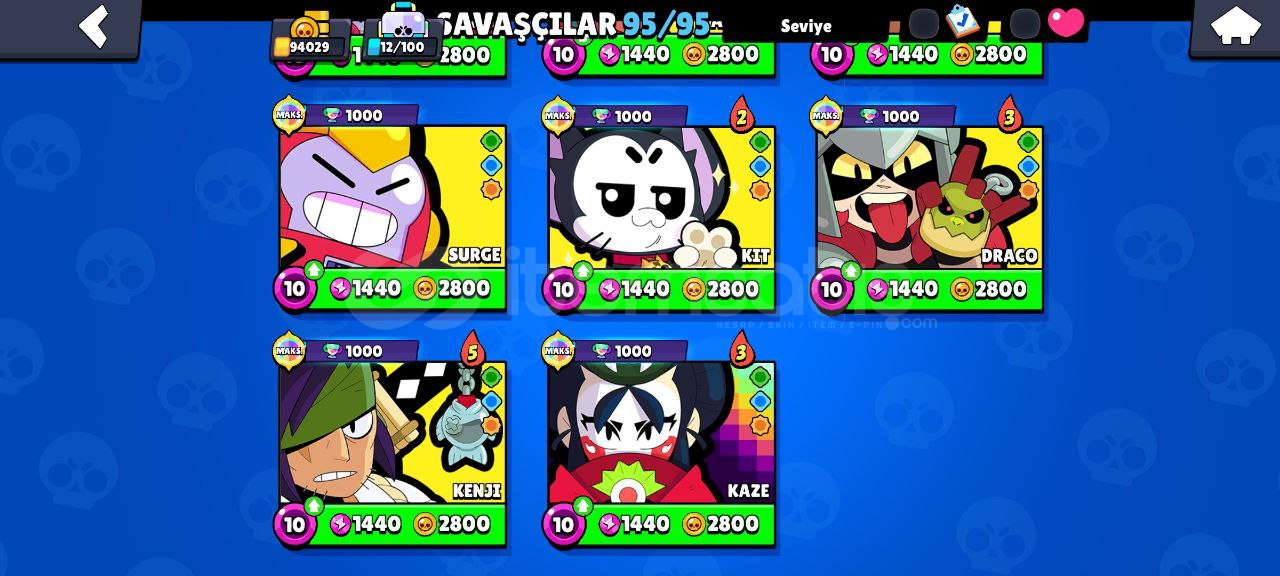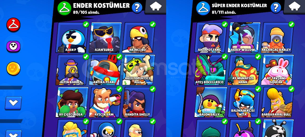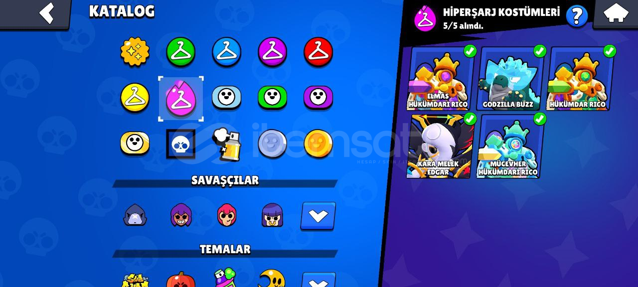 Hesap Özellikleri:95/95 Karakter, Hepsi +10 seviye45 Hiperşarj (hepsi kullanılabilir durumda)138/190 Yıldız Gücü143/190 Aksesuar133 Eşya 89 Ender kostüm81 Süper ender kostüm96 Destansı kostüm12 Gizemli kostüm17 Efsanevi kostüm5 Hiperşarş kostümü (Kara Melek Edgar'da içlerinde var.) Kupa yolunda 70k dan sonraki hiçbir ödül toplanmadı. Kayıtlarda alınmam&#...