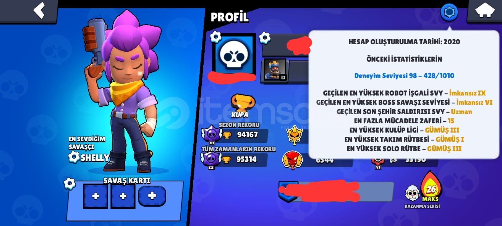 HESAP 2020 KURUMCİDDİ ALICIYSANIZ LÜTFEN YAZINIZ 🙂🔹 En Yüksek Kupa:95314🔹 Güncel Kupa:95314🔹 3v3:7404🔹 Karakter Sayısı:95 makss🔹 11 Seviye Sayısı:40🔹 Hiperşarj Sayısı 35🔹 Kaç 35 Rank:0🔹 Eski Sistem Pl Bilgisi:Efsanevi bir🔹 2024 Master Sayısı: 0🔹 2025 Master Sayısı:0🔹 Ünvan Sayısı (Bp\Ustalık):11 ...