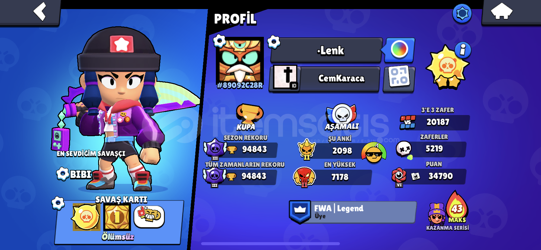 Hesapta tüm karakterler açık, eski bir hesap.Toplamda 344 Kostüm Var.64 Adet Hyper Charge'lı Karakter, Toplam 73 Maxlanmış Karakter Vardır.Güneş Şöhreti 2'dir, 3 Olmasına 4k vardır.17 Adet Ünvan Vardır.Ender Kostüm: 88/116Süper Ender Kostüm: 113/199Destansı Kostüm: 118/241Gizemli Kostüm: 12/44Efsanevi Kostüm: 5/39Hyper Kostüm: 5Gümüş Kostüm: 5Efsanevi Roze...