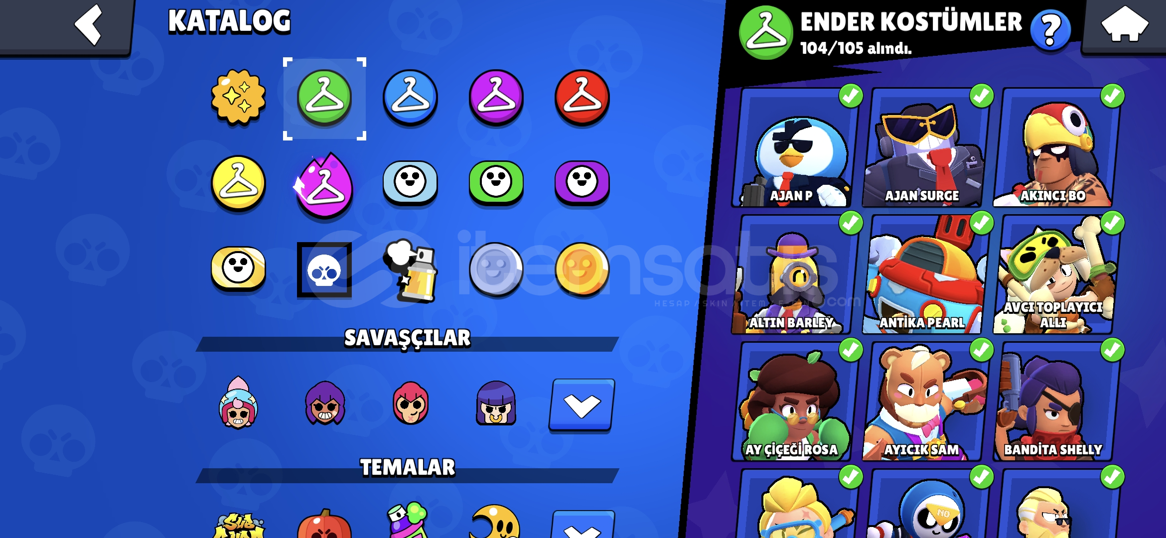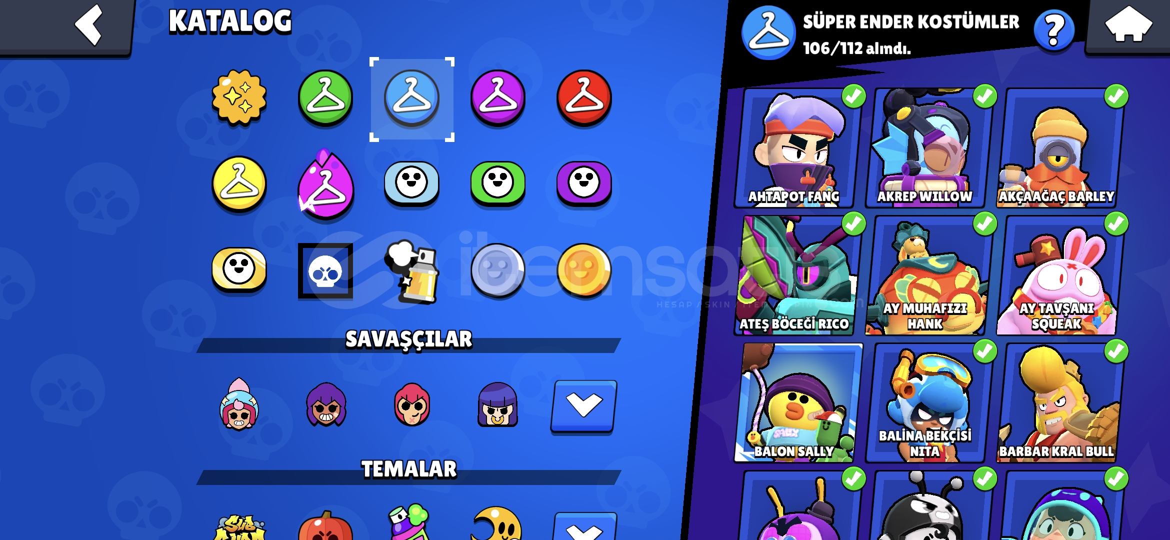 Hesabım 95K KupadırTüm karakterler 10 sv. Ve üstüdürTüm ender ve süper ender skinler vardırToplam 370 skin vardırEski sistemde 2 kere master atılmıştırBu sezonun Bpp si açıktır 35 tane ünvan vardırİndirim cüzi miktarda olurHesap koruması açıktır üstünüze devredilir ve kurtarma kodları verilirAlan kişiye Hayırlı Olsun
