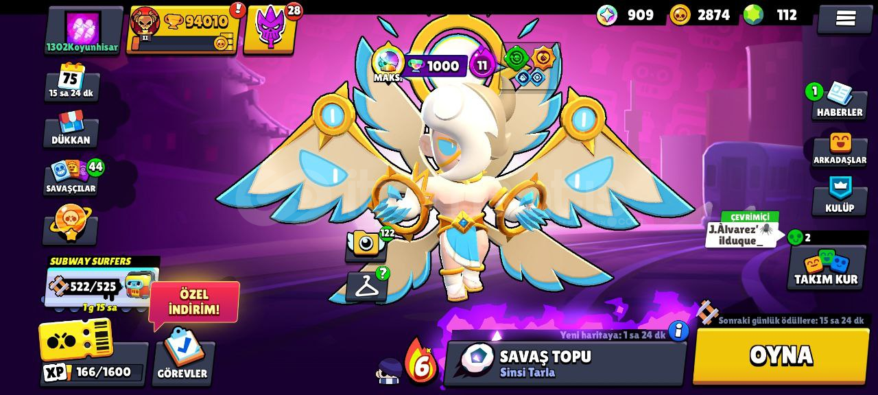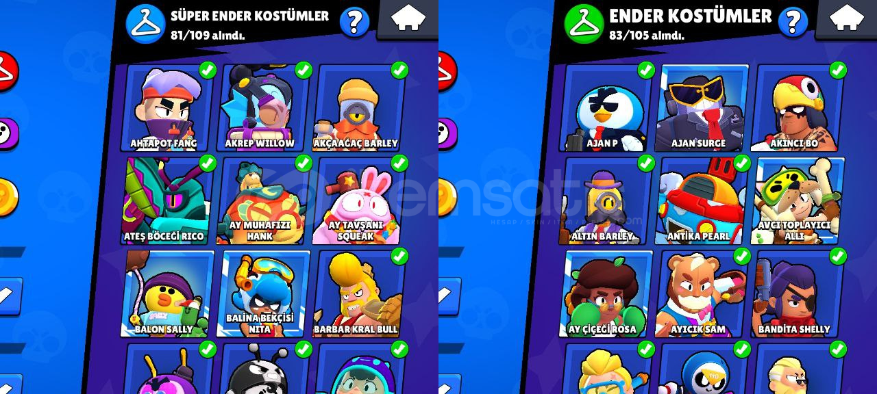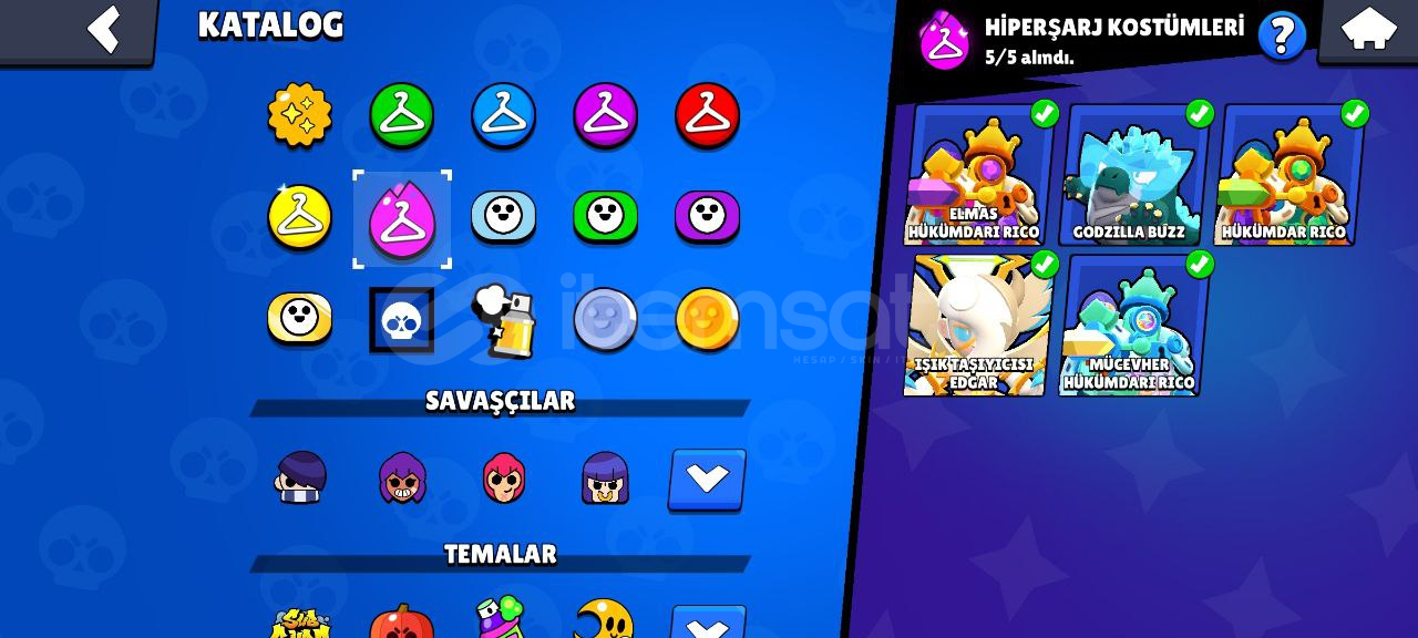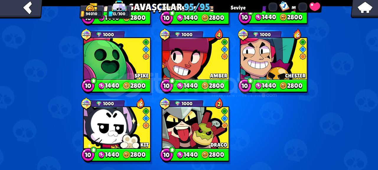 Hesap Özellikleri:95/95 Karakter, Hepsi +10 seviye43 Hiperşarj (hepsi kullanılabilir durumda)140/190 Yıldız Gücü158/190 Aksesuar159 Eşya 83 Ender kostüm81 Süper ender kostüm103 Destansı kostüm11 Gizemli kostüm18 Efsanevi kostüm5 Hiperşarş kostümü Kupa yolunda 70k dan sonraki hiçbir ödül toplanmadı. Kayıtlarda alınmamış 122 ödül var.Sadece ko...