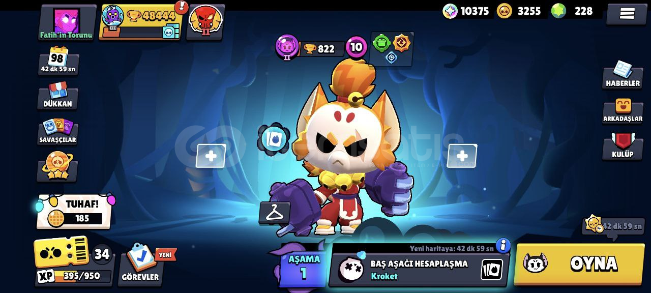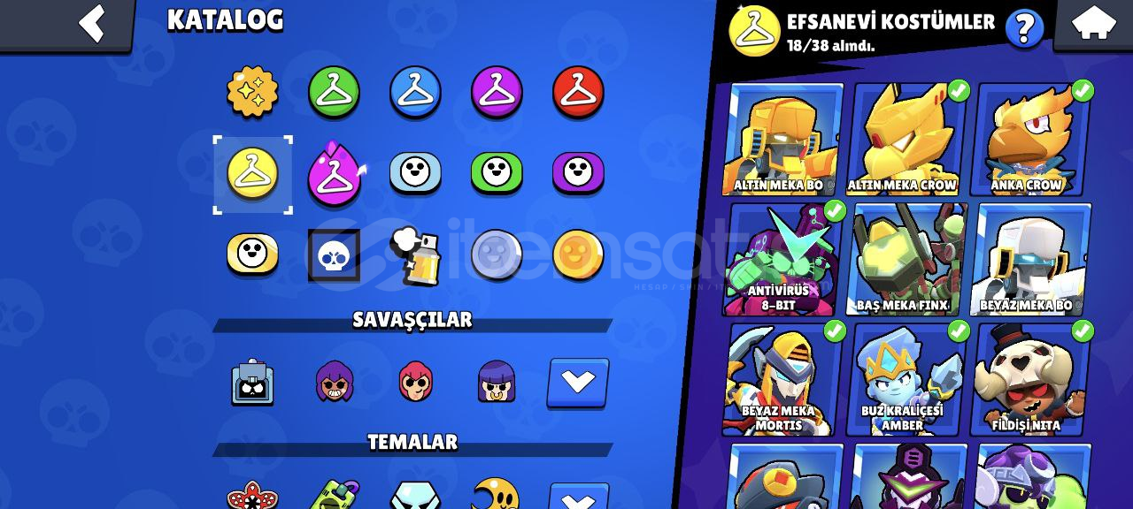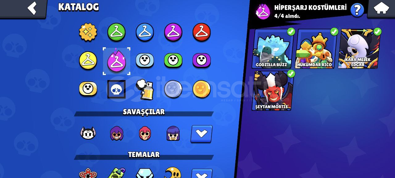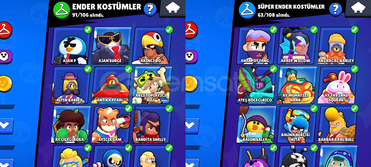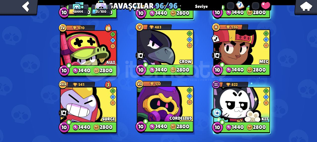 Hesap Özellikleri:96/96 Karakter, Hepsi +10 seviye, 48 tanesi 11 seviye!46 Hiperşarj (hepsi kullanılabilir durumda)144/192 Yıldız Gücü157/192 Aksesuar119 Eşya 91 Ender kostüm63 Süper ender kostüm101 Destansı kostüm10 Gizemli kostüm18 Efsanevi kostüm4 Hiperşarş kostümü (Şeytan Mortis ve Kara Melek Edgar'da aralarında var.)Sadece kostümlerin değeri ortalama 30.000 taş yani 3...