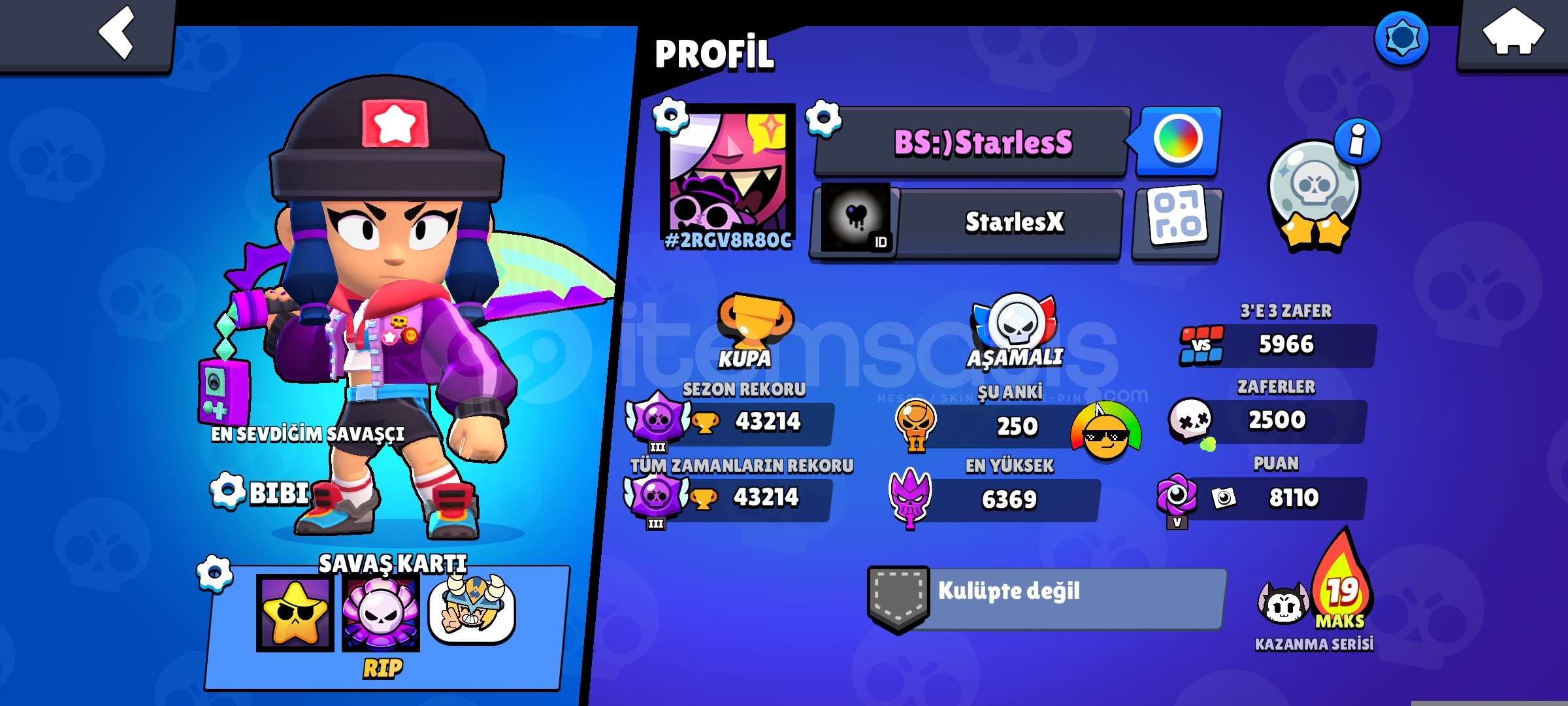 2019dan beri kullandığım şahsi kişisel hesabım.43k+ kupa var ve 230dan fazla kostüm mevcut.Eski BP sezonları 2-3-4-5-6 açılmış durumda, dönemseller ve kostümlerle birlikte çoğu içerik mevcut.2019–2023 dönemine ait tüm BP sezonu kostüm ve rozetleri ve dönsemsel kostümler bulunuyor.Tüm karakterler açık ve hesap supercell tarafından doğrulanmı#...