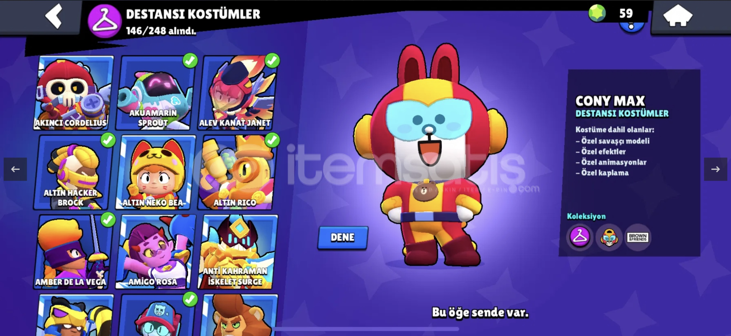 Hesapta 4 karakter 10 seviyedir gerisi full 11 leveldir bunların içinden 75 tanesi hiperlidir396 Kostüm Bulunur 6400 mucevher 11K altın 60 elmas ve 1400 brawl points bulunmaktadır. (Meteor 2 yı hesap nerdeyse yarılamıştr.)24 ünvan bulunur 6 tanesi bp plus ünvanıdır. Tüm sorumluluk bize ait,Sorun yaşamayacağınız Hesaptır Daha Fazla Detay almak ıstıyorsanız dmden yaza...
