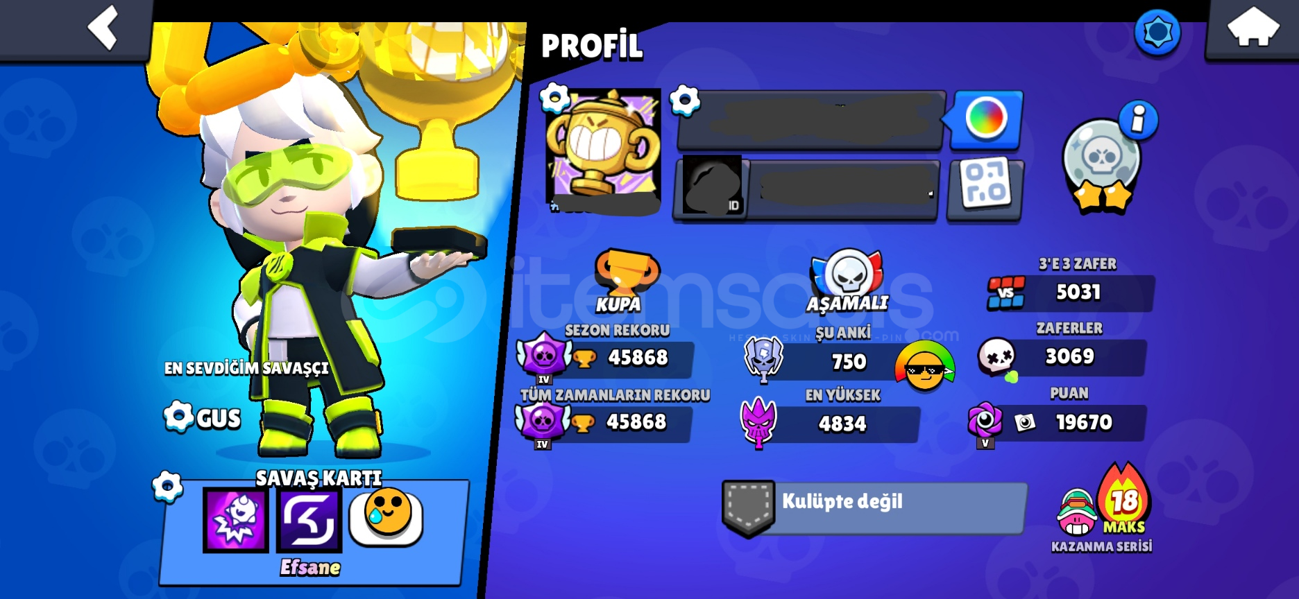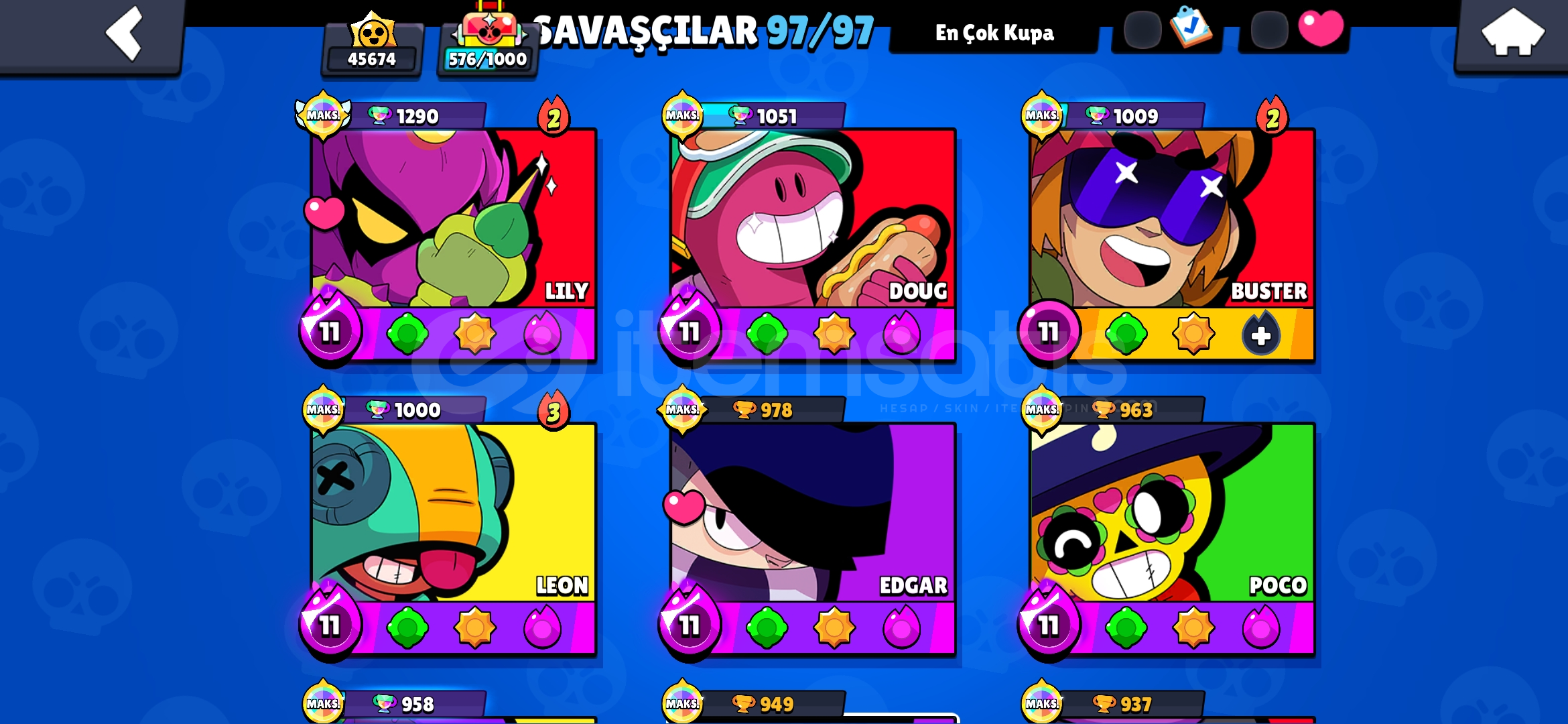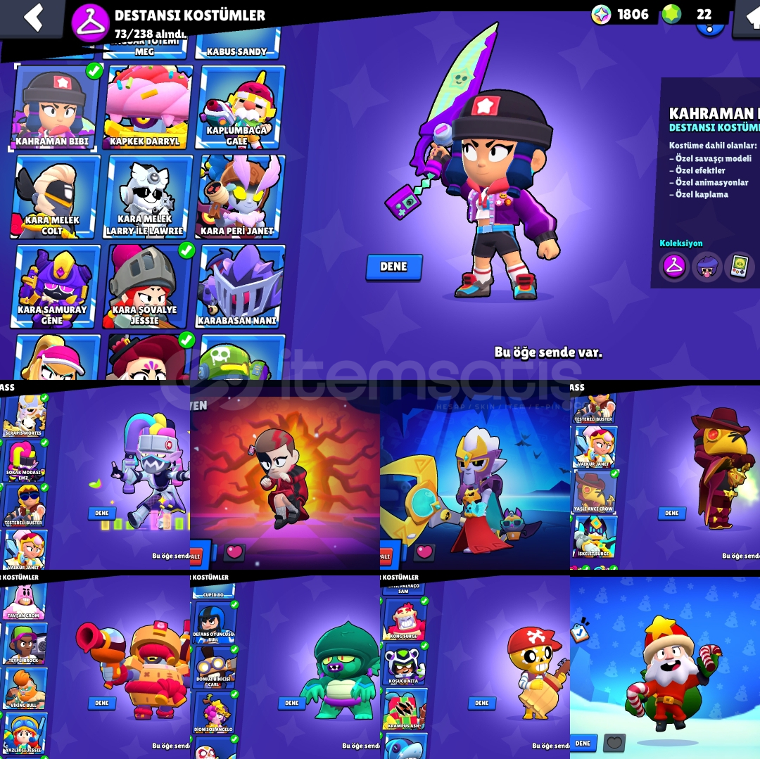 Hesapta Tonlarca Oyunda Olmayan Nadir Skinler Vardır,Ayrıca Son 4Brawl Pass Düzenli Olarak Açılmıştır( Hepsi Plus Olarak[Şuanki Sezon Hariç])
