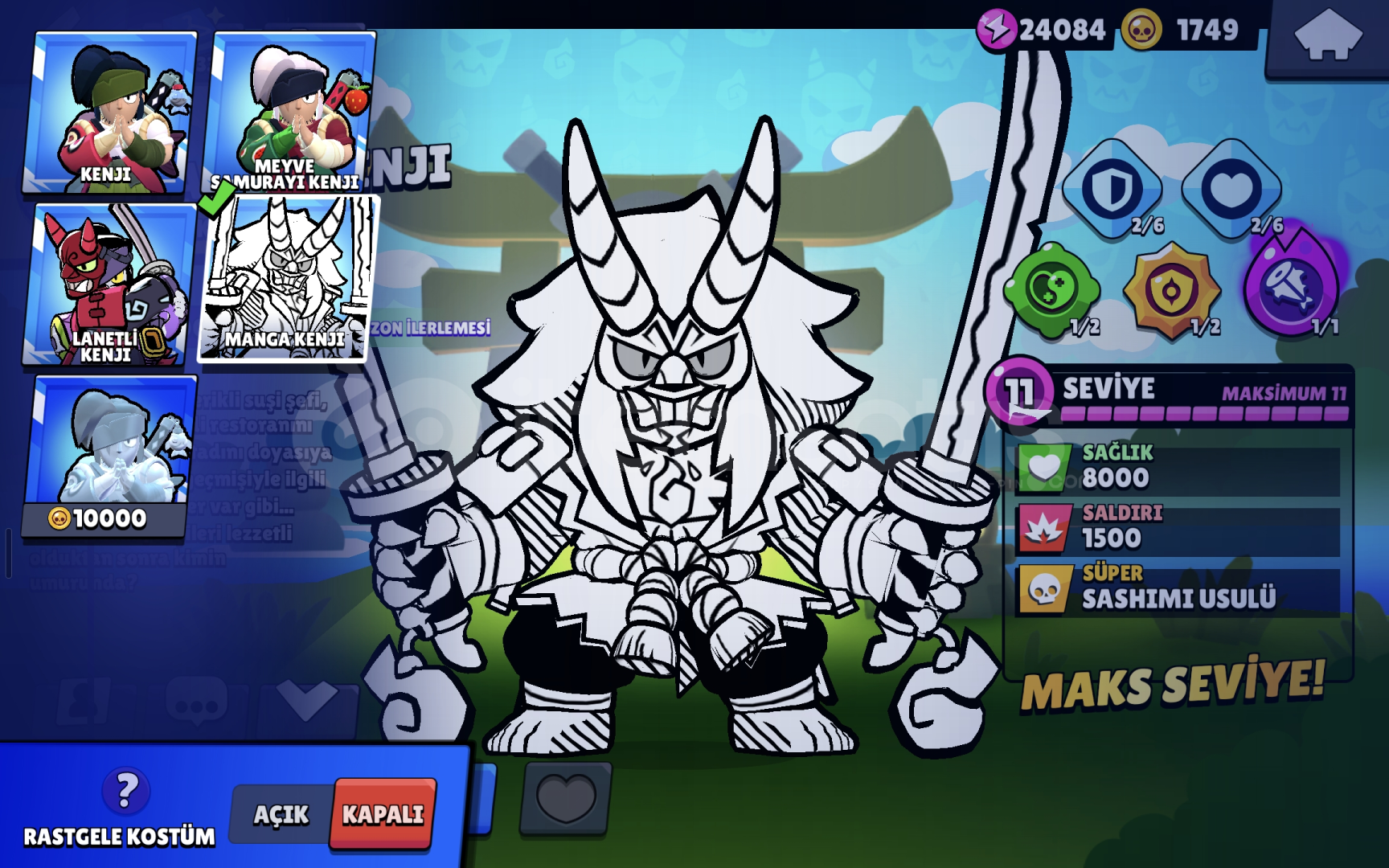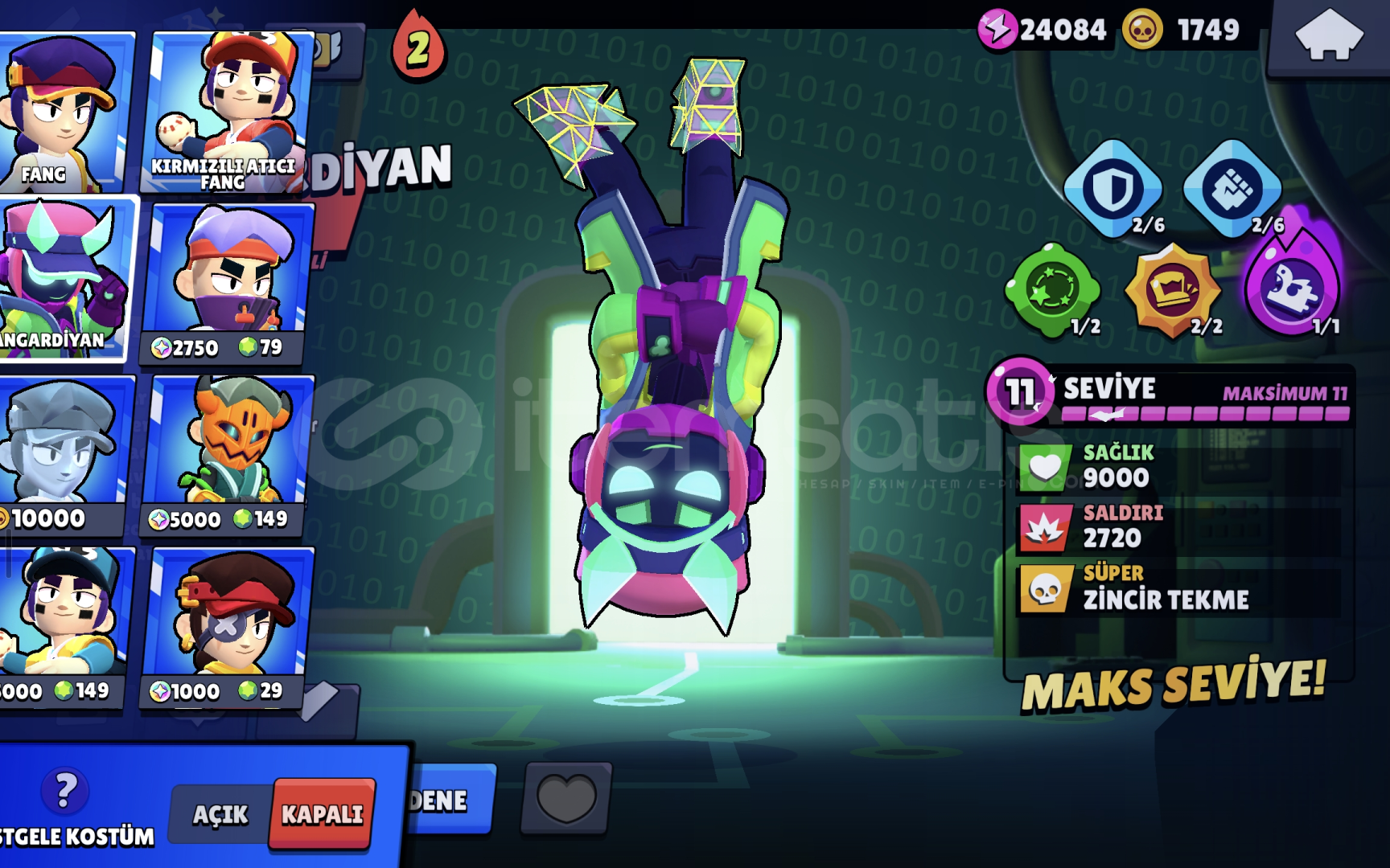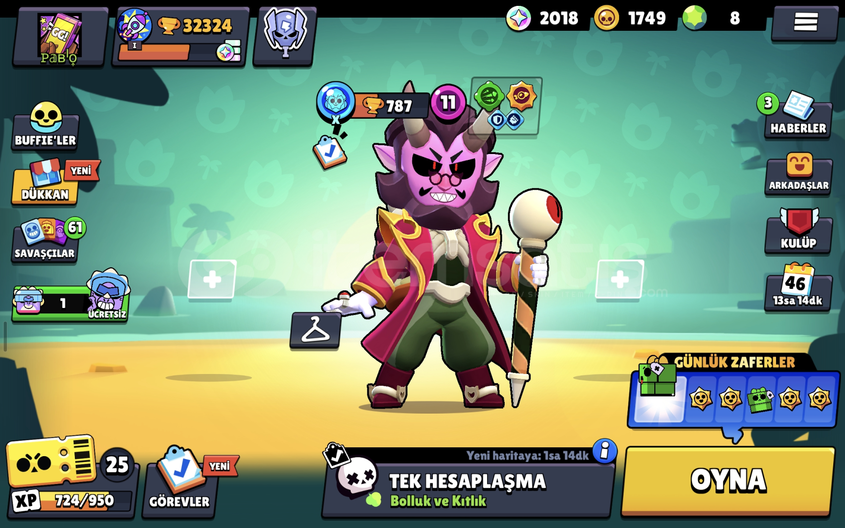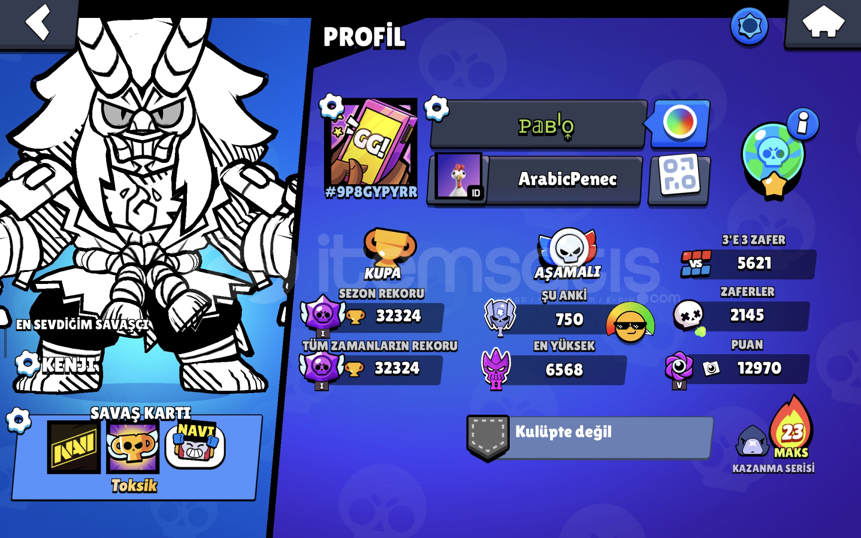 Almadan önce iletişime geçiniz.Aklınıza takılan soruları DM'den iletebilirsiniz. HESAP ÖZELLİKLERİ32324 Kupa97/97 Karakter226 Kostüm(74 Ender,70 Süper Ender,66 Destansı,7 Gizemli,4Efsanevi,5 Hiper Şarj)1'den fazla Pess Kostümü MevcutEn Yüksek Aşamalı Kademesi Gizemli 22018 Mücevher8 Elmas1749 Altın1.2mn kulüpte başkan
