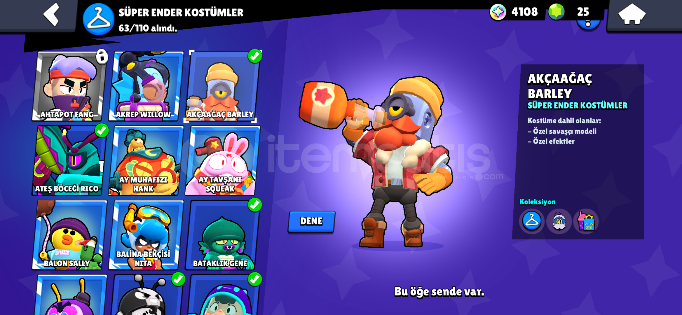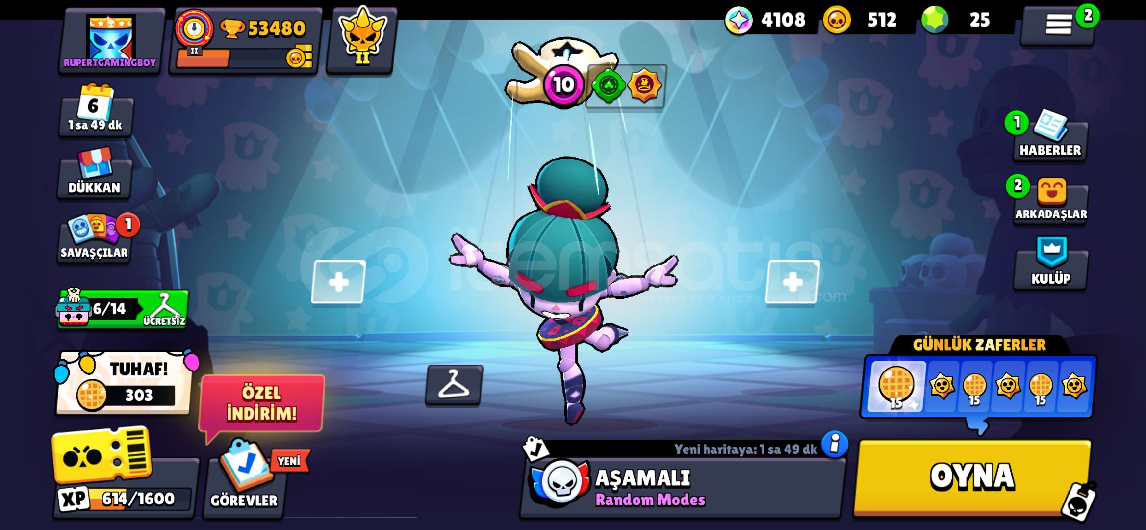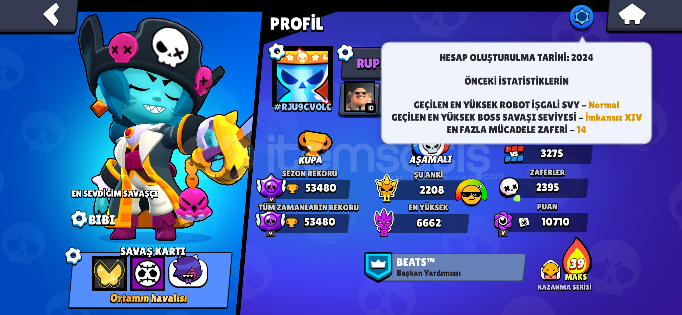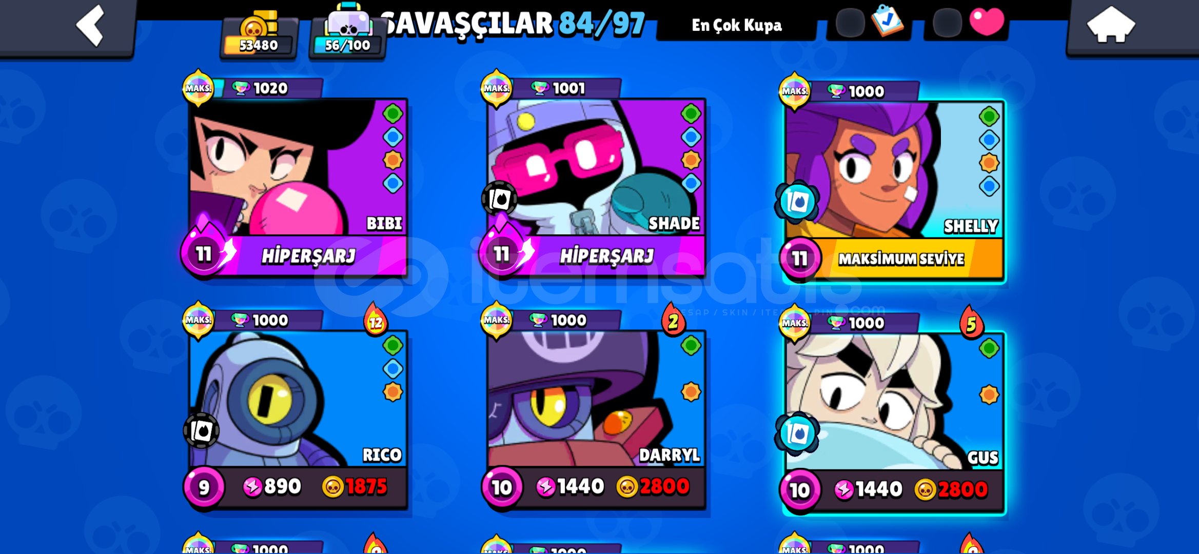 BRAWL STARSHESABI:HESAP 2024 AÇIMIDIRİÇİNDE BOLCA KOSTÜM VARDIR3 TANE PASS AÇILMIŞTIRÇOĞU KARAKTER 11LVL VE 1000 KUPADIROYUNU BIRAKTIĞIM IÇIN SATIYORUMOTOMATİK TESLİMAT İLE HESABIN GMAİLİNİ SİZE VERİYORUM VE HESAP GERİ ALINAMAZ BİR ŞEKİLDE SİZİN OLUYORCLASH ROYALE HESABI:9K KUPA VE 48LVLBOL KAYNAKLIMEZARLIK MAİN DESTELİBOL EMOJİ VE BOL KULE GÖ...