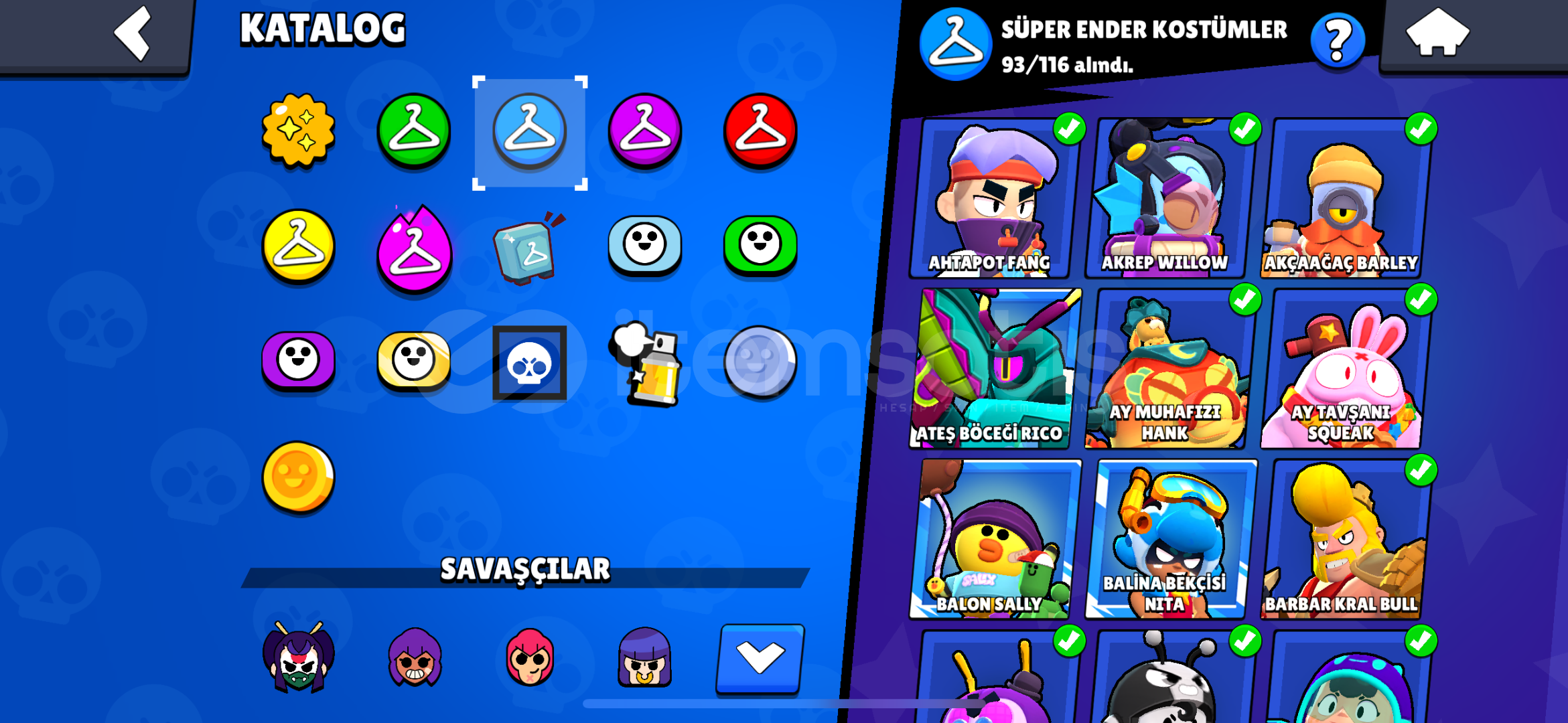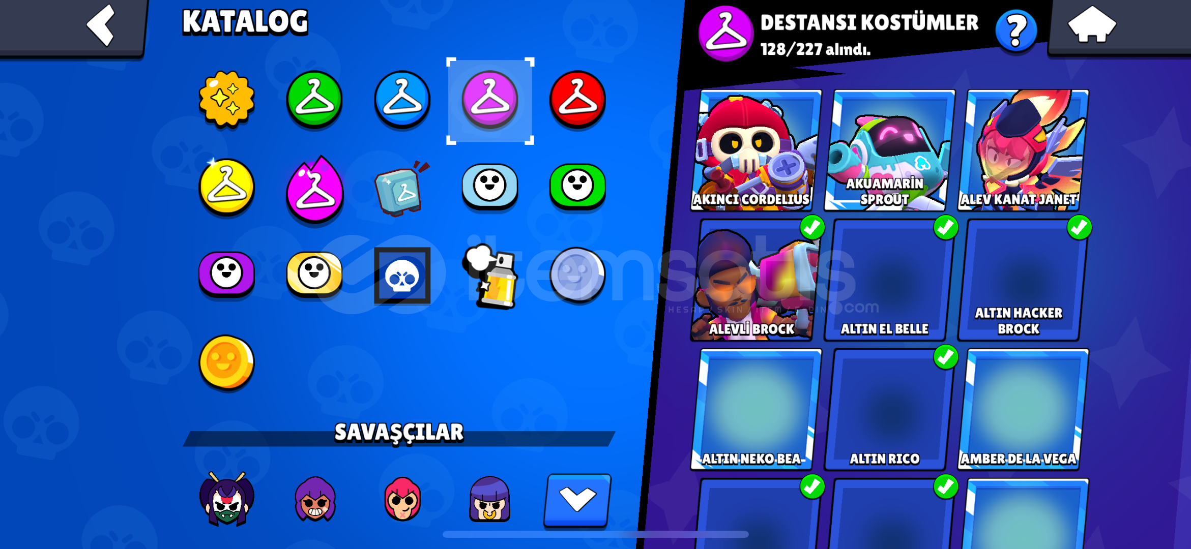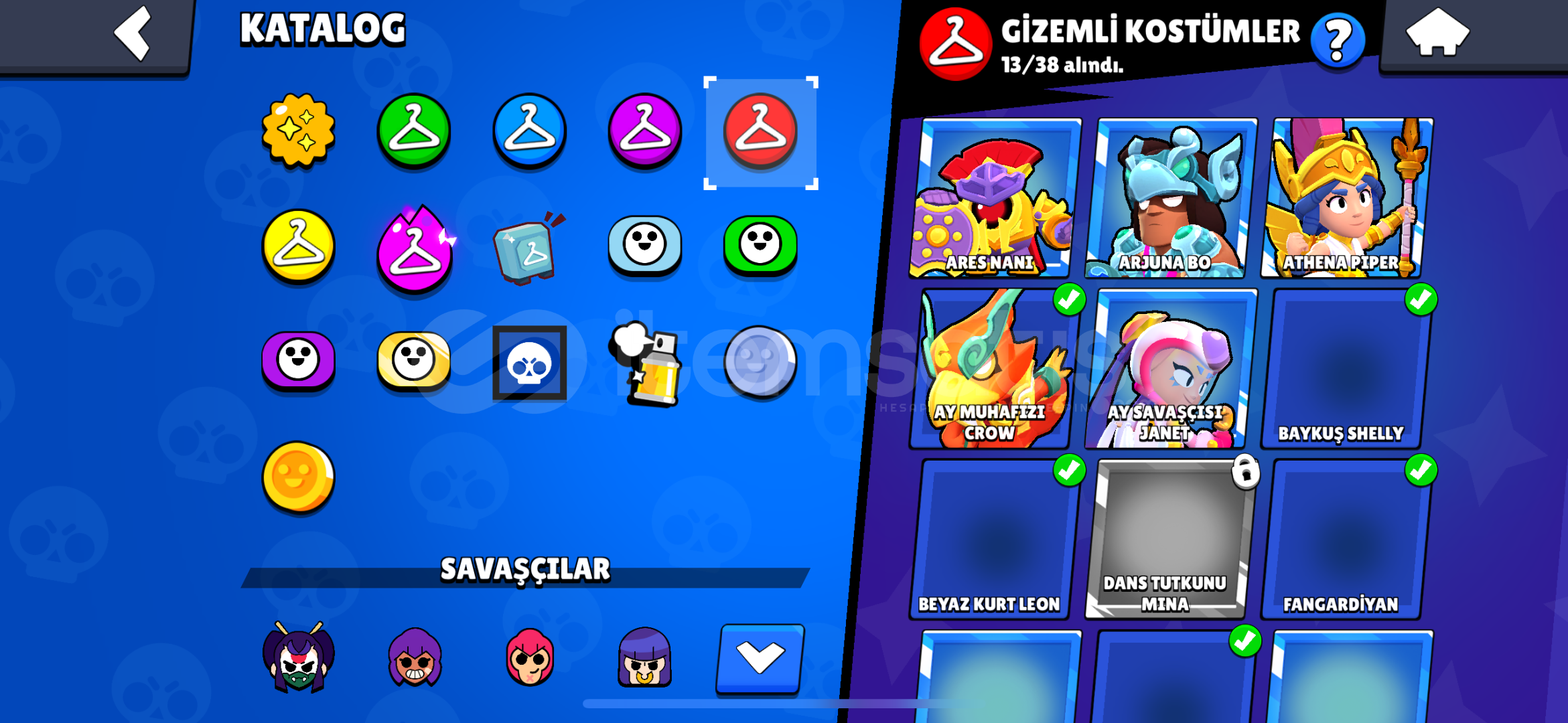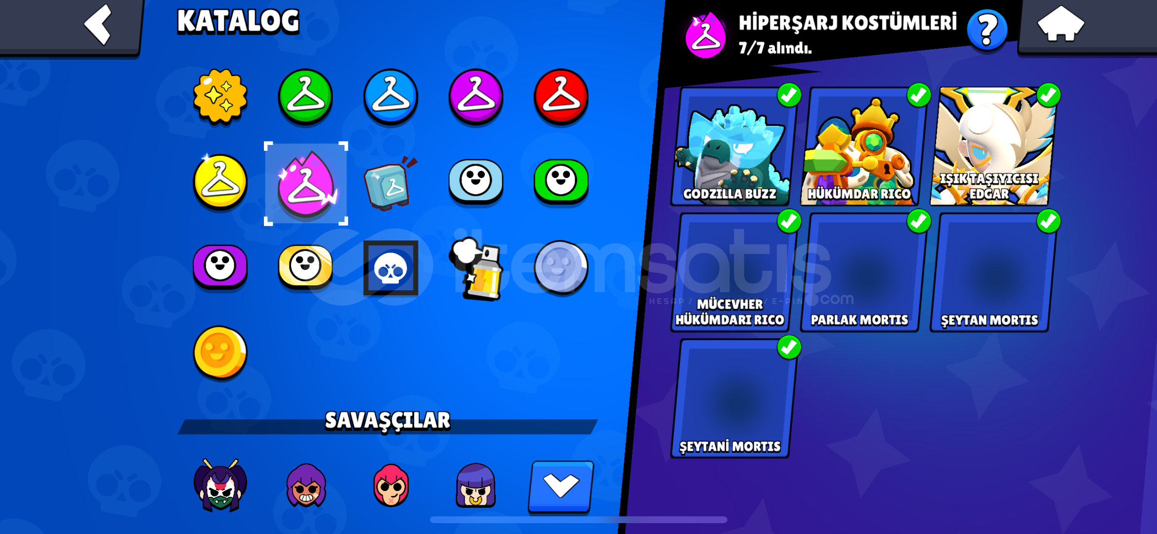 İsteyene detaylı bilgi verilir mail değiştirelecek.mars şöhreticadı-dansöz-yıldız shellykarson-meka-karamelek- coltminotor bullzeus-alevl-ranger-hacker-brockoyun kurucu elprimo harıc butun skınlernoel baba mike kardan adam tickantivürüs 8 bitbaşssız-noel baba stualtın el bella ışık taşıyıcısı edgargümüş ve mortis sahilde hariç bütün mortis s...