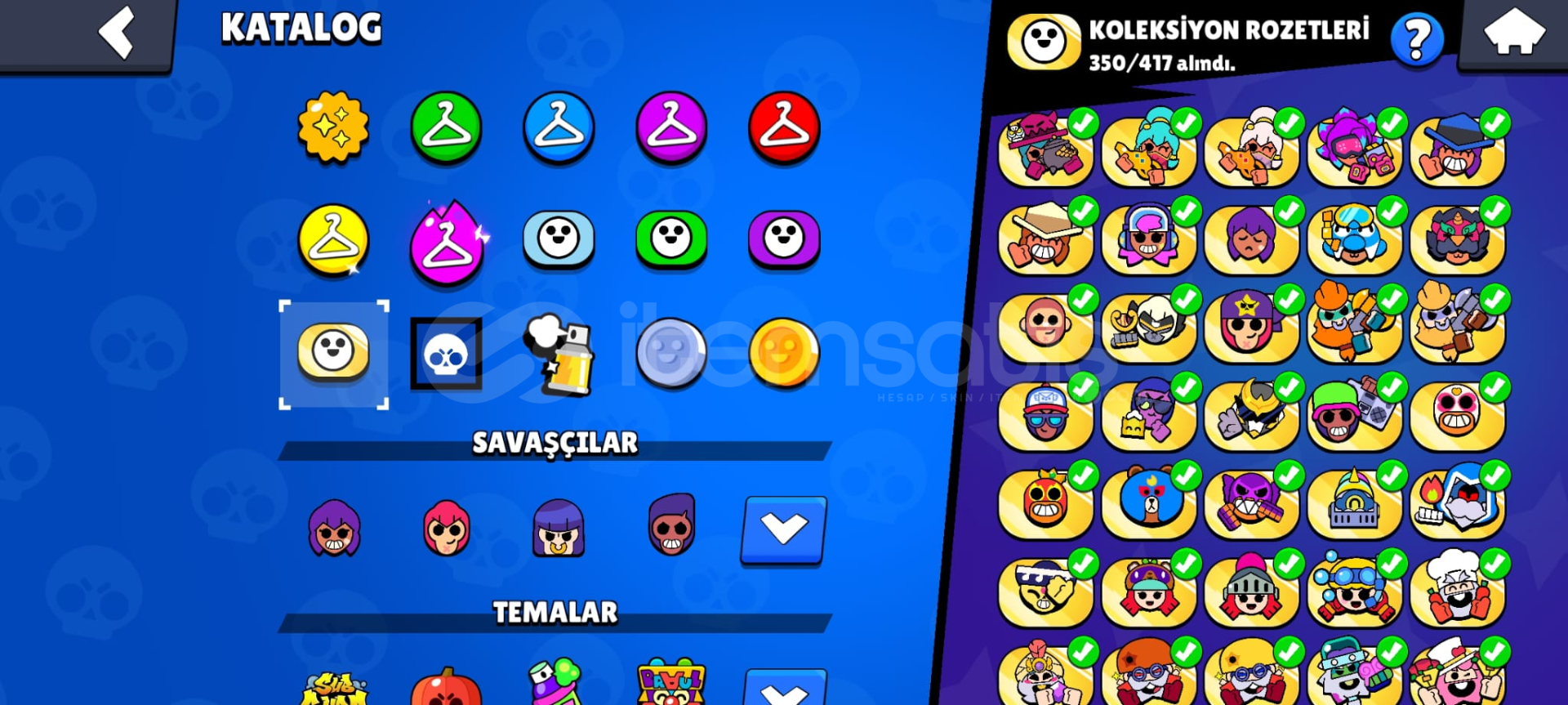 273 Oyuncu Simgesi, 156 Sıradan Rozet, 57 Ender Rozet, 32 Destansı Rozet, 350 Koleksiyon Rozet, 138 Sprey vardır.