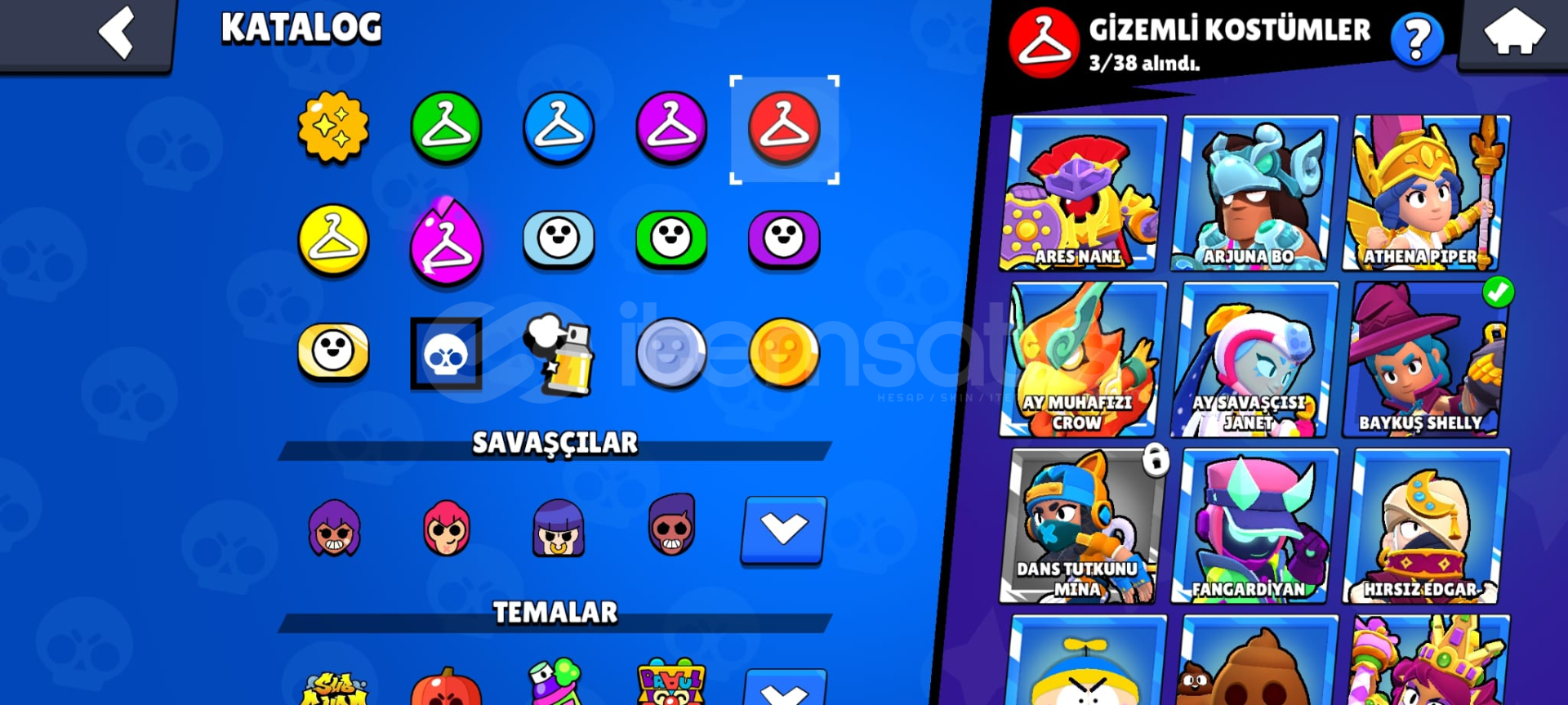 Satılık 46k (2020) 93 Karakterli Brawl Stars Hesabı2020den kalma kahraman bibili, tıknaz darrylli, sokak ninjası taralı ve dahası olan hesap 30 elmaslı vardır. Paraya ihtiyacım olduğu için satıyorum, almasanız da canınız sağ olsun :) 4 unvan var; Anlatacak Zaman Yok!, Gece Yaratığı, El Mariachi, RİP.merak ettiğiniz başka bir şey varsa sorabilirsiniz.273 Oyuncu Simgesi, 156 S&...