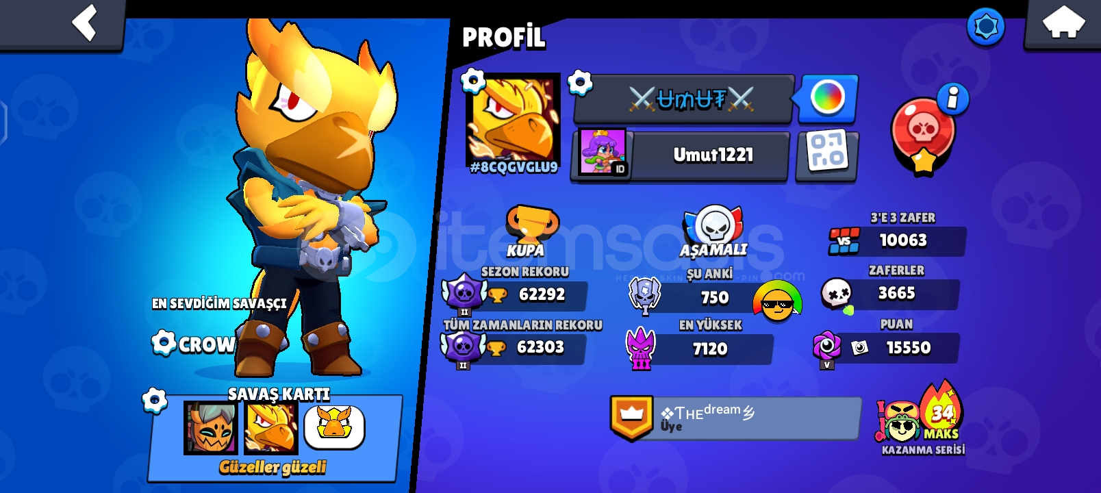 Cr hesabı 6700 kupalı (kasılmalık hesap) (Tokmak gibi toksik emojiler vardır)