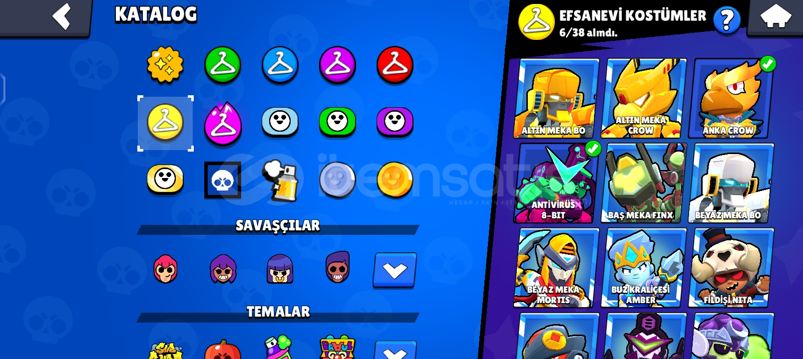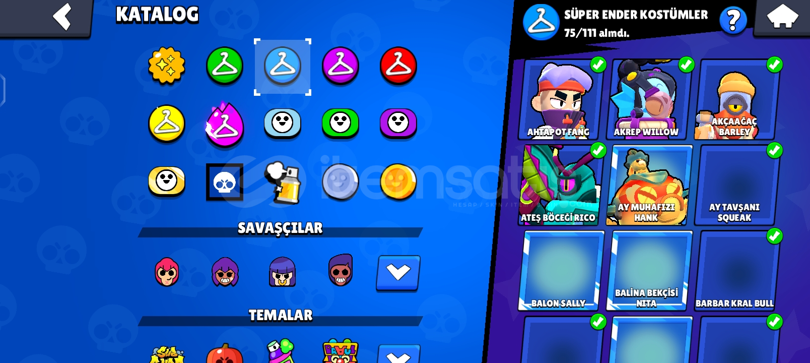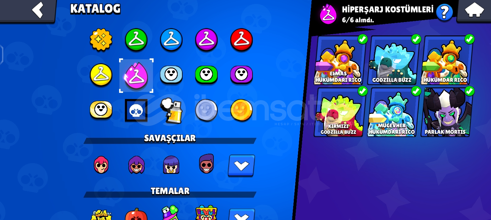 Öncelikle bs hesabı 62k 23 açık hipersarj 35 max level 15 adet 1k 3 adet bp açıldı mars 193 karakter var 1 altın 6 hipersarj 6 efsanevi 5 gizemli 64 destansı 75 Süper ender 81 ender varCr hesabı 6700 kupalı (kasılmalık hesap) (Tokmak gibi toksik emojiler vardır)Bb12 leveller düşük bbll den kalma 1700 kupaPazarlık YOKTUR! hepsi aynı gmail içindedir
