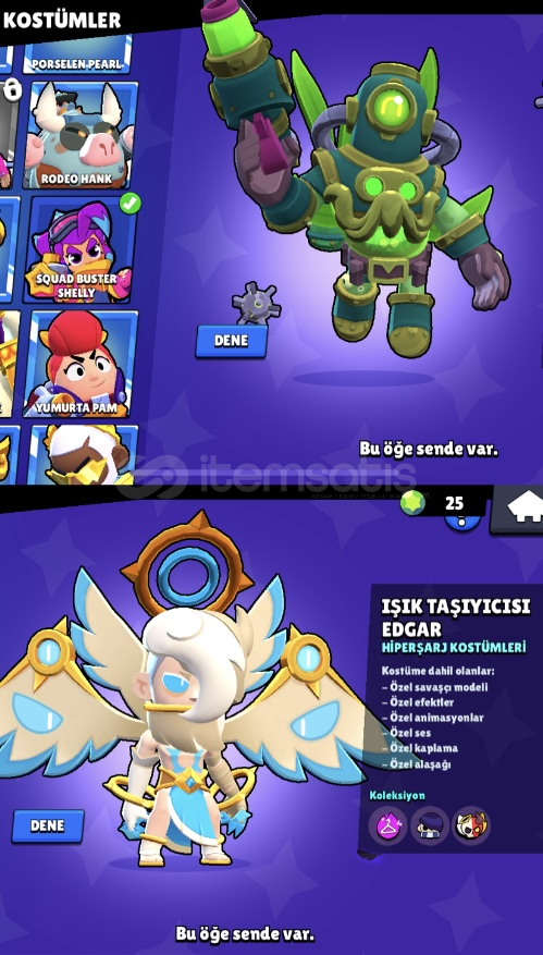 hesapta bol skin vardır efsanevi hiperşarj skinleri vb.