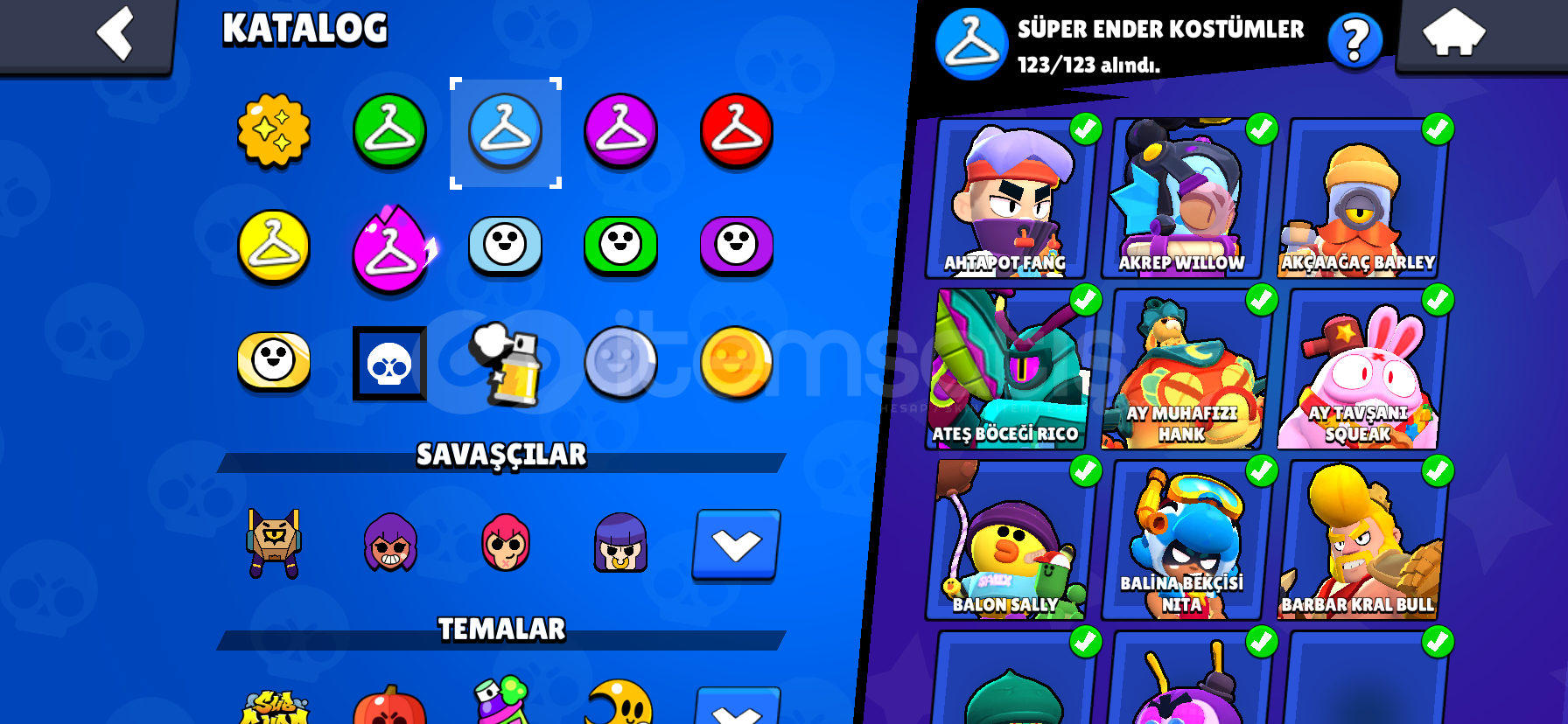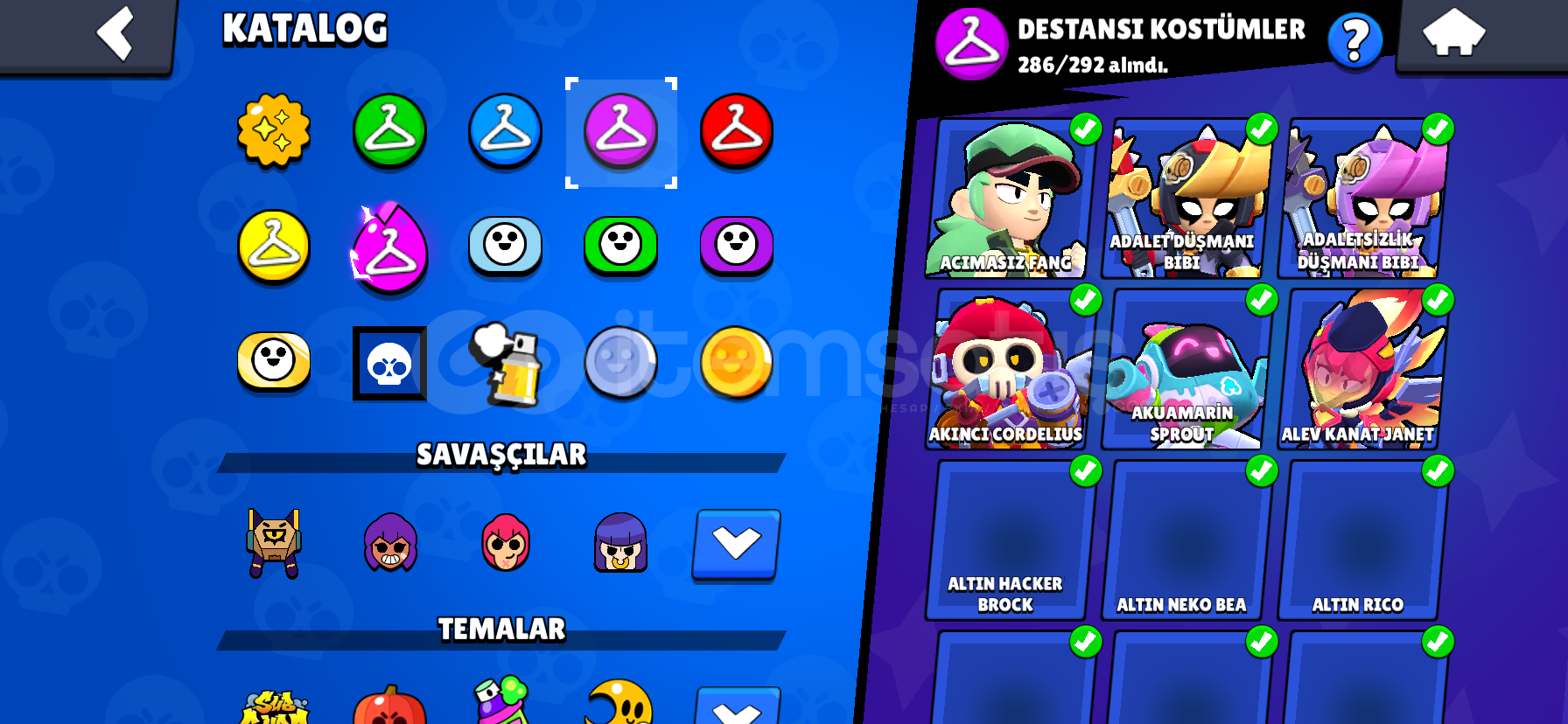 TÜM KARAKTERLER 1000 KUPA OLUP (95/94) TÜM HİPER ŞARZLAR AKSESUARLAR YILDIZ GÜÇLERİ YETENEKLER FULL DÜR ( AKSESUAR,YILDIZ GÜCÜ,YETENEKELR EKSİK OLABİLİR)