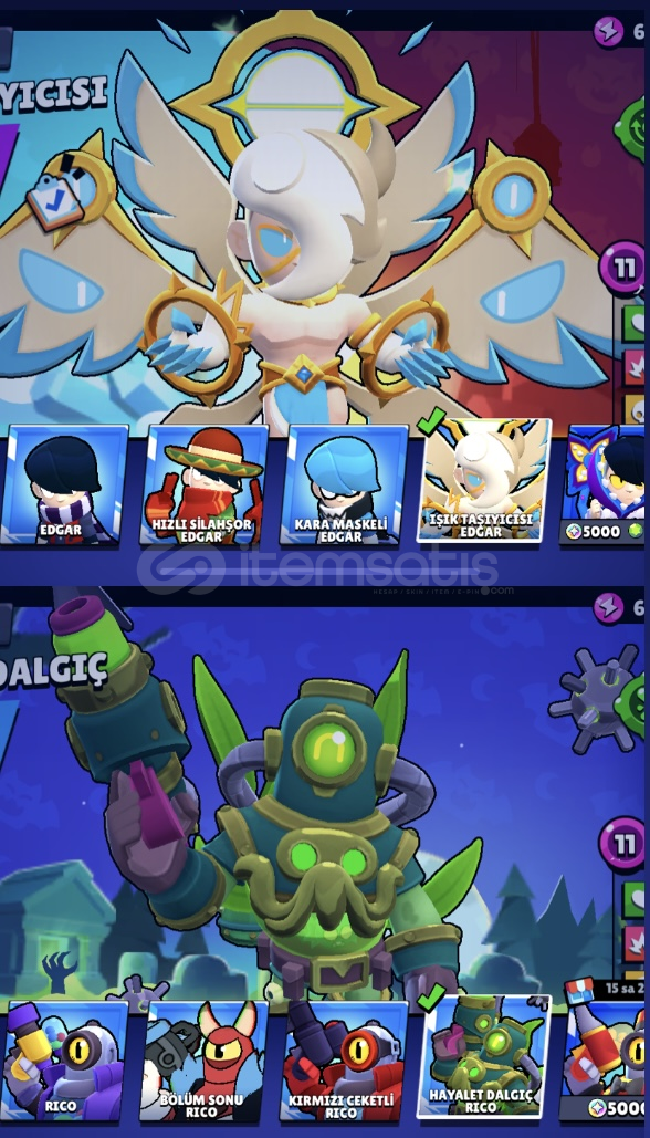 hesapta bol skin vardır efsanevi hiperşarj skinleri vb.