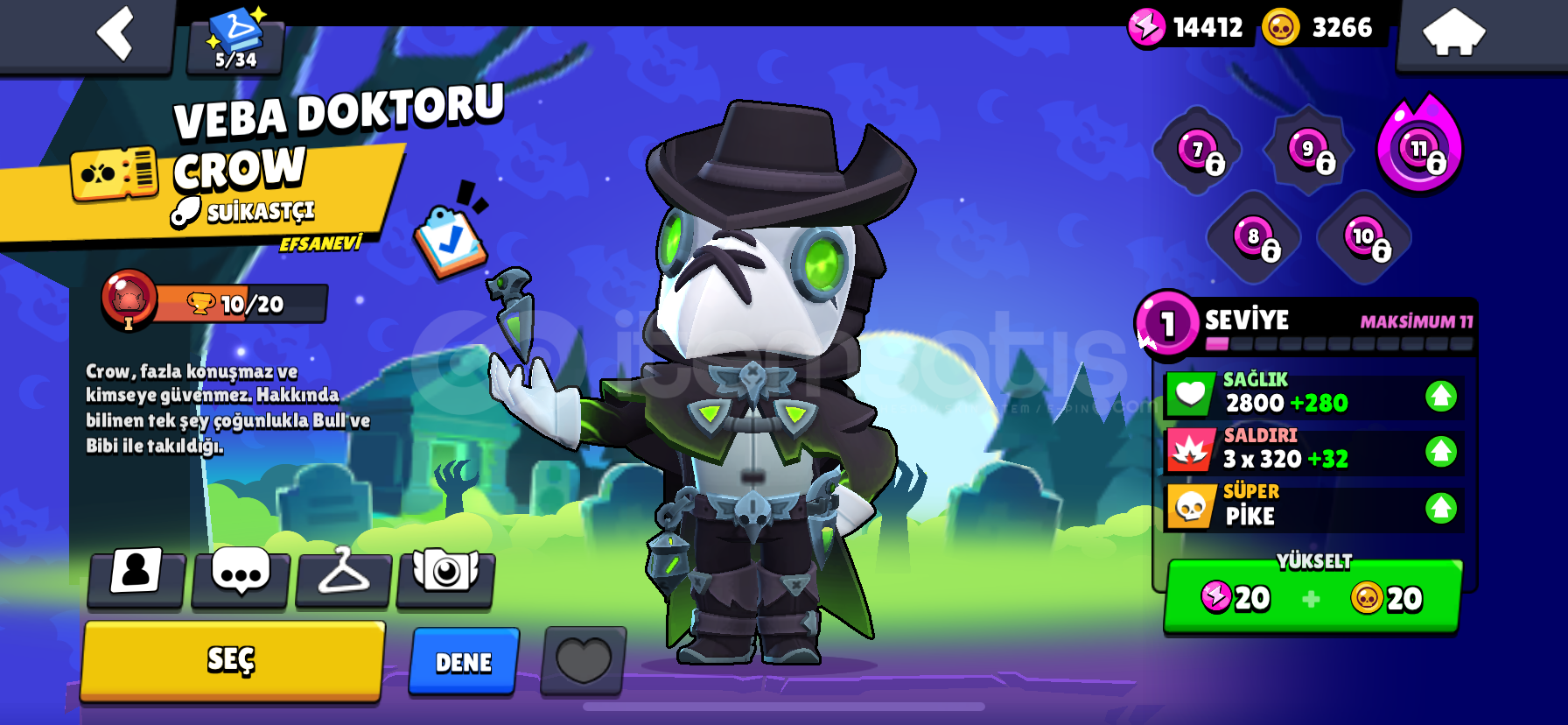 12000.kupa güncel brawl pass açıktır.ve her karaktere ait en az 1 tane gizemli kostüm vardır hesapta.bp açılmış zamanında.kupası az olsada kostüm olarak çok değerli hesaptır3 adet 1000 kupadan fazla kasılmış ve güncel 1000 kupa olan karakter vardırindirim olabilir.