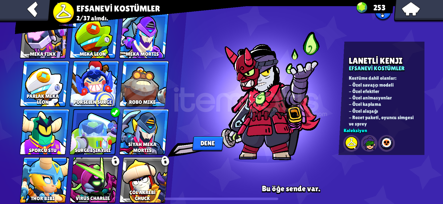 ve her karaktere ait en az 1 tane gizemli kostüm vardır hesapta.