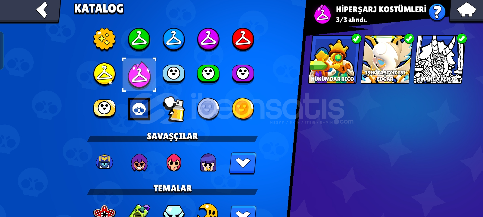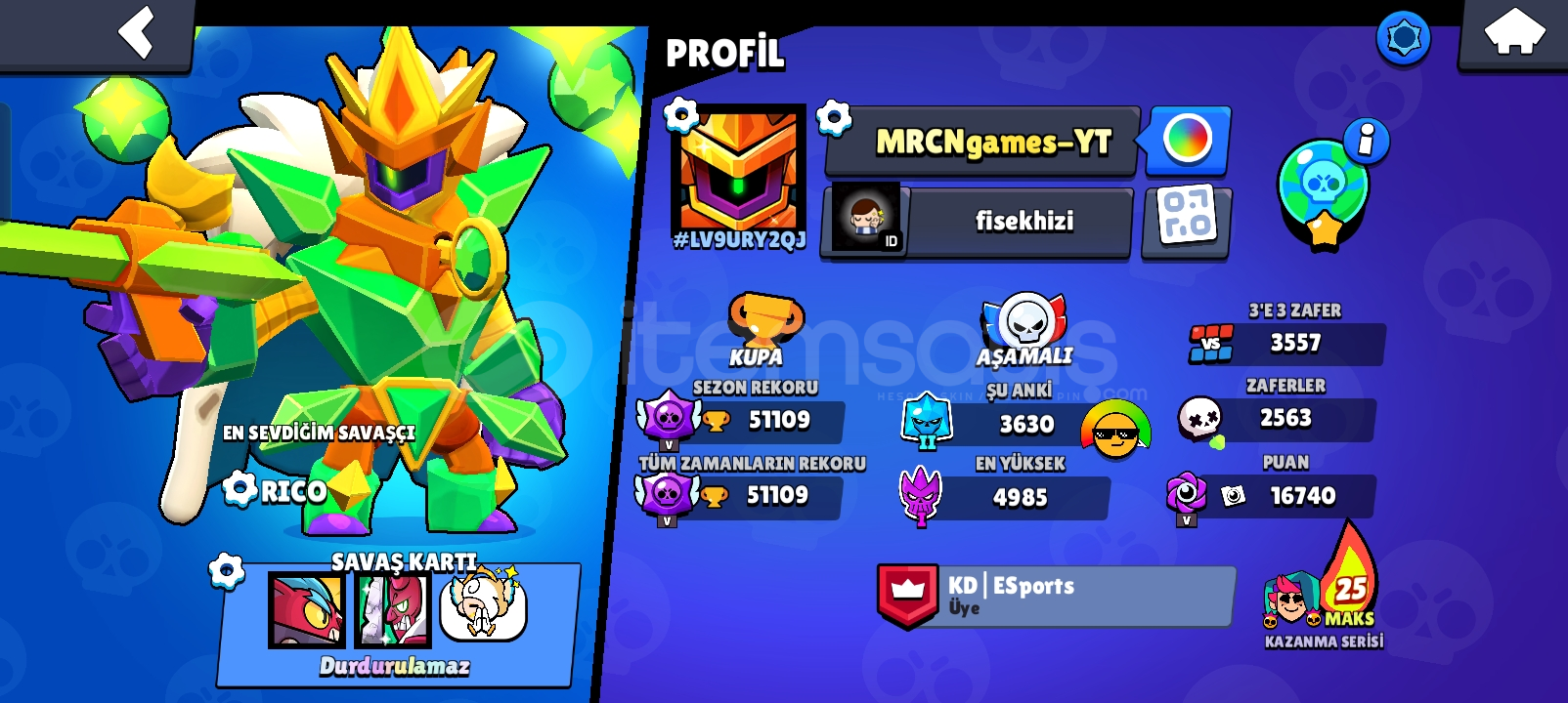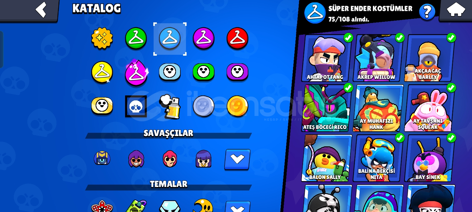 Tüm karakterler full 51.600 kupa 12 tane 1000 kupalı karakter var 17 tane hiperşarjlı karakter var karakterler en az 7 seviye. Alan kişiye kadar kasmaya devam ediyorum. İsteyenler Hesap ID:fisekhizi ' den takip edebilir.kendim çok emek verdim