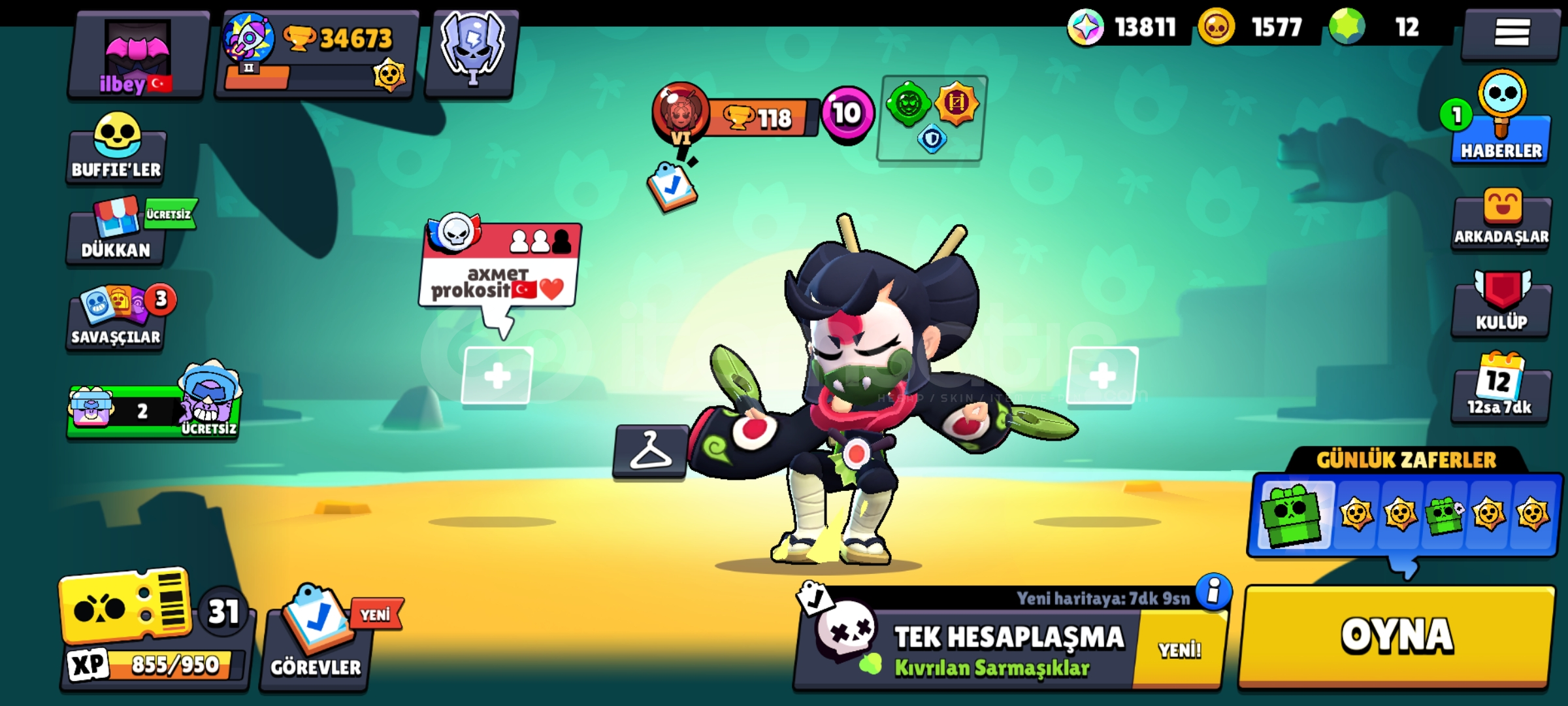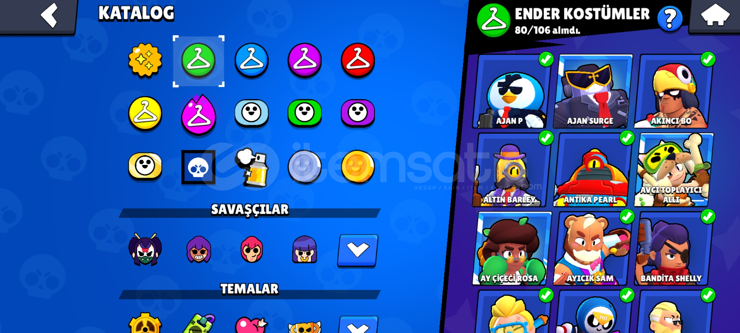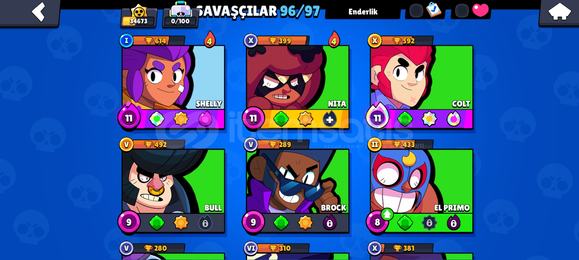 Merhabalar hesabımız 36 K kupa çok bol skinler ve 96 karakterlidir skinler özel ve fazladır daha ucuzunu bulamaszın...