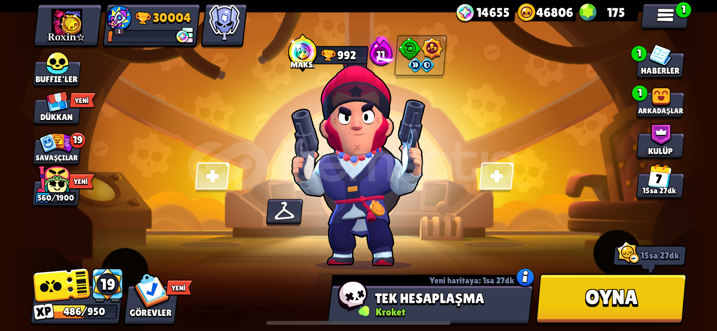 Hesapta 154 Kostüm, 175 Elmas 45.000 Altın ve 14500 Star Point (Kostüm parası) vardır.
