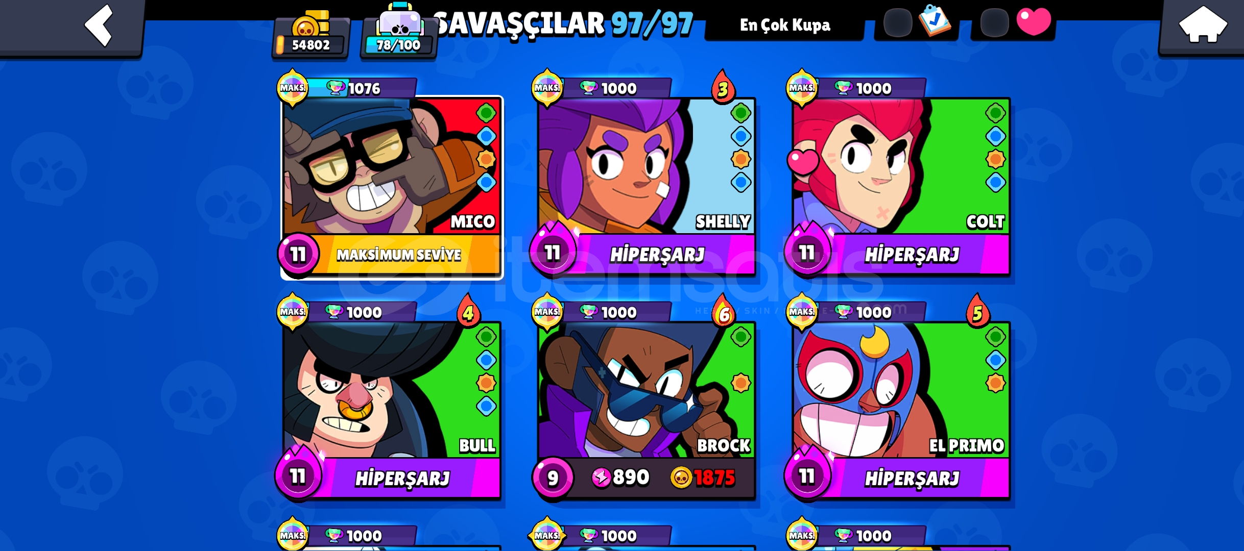 AY ŞÖHRETİ 397 KARAKTER✅25 HİPERŞARZ10 MAXİMUM SEVİYETOPLAM 35 MAXİMUM SEVİYE55 K KUPAMEGA KUTU DAR...