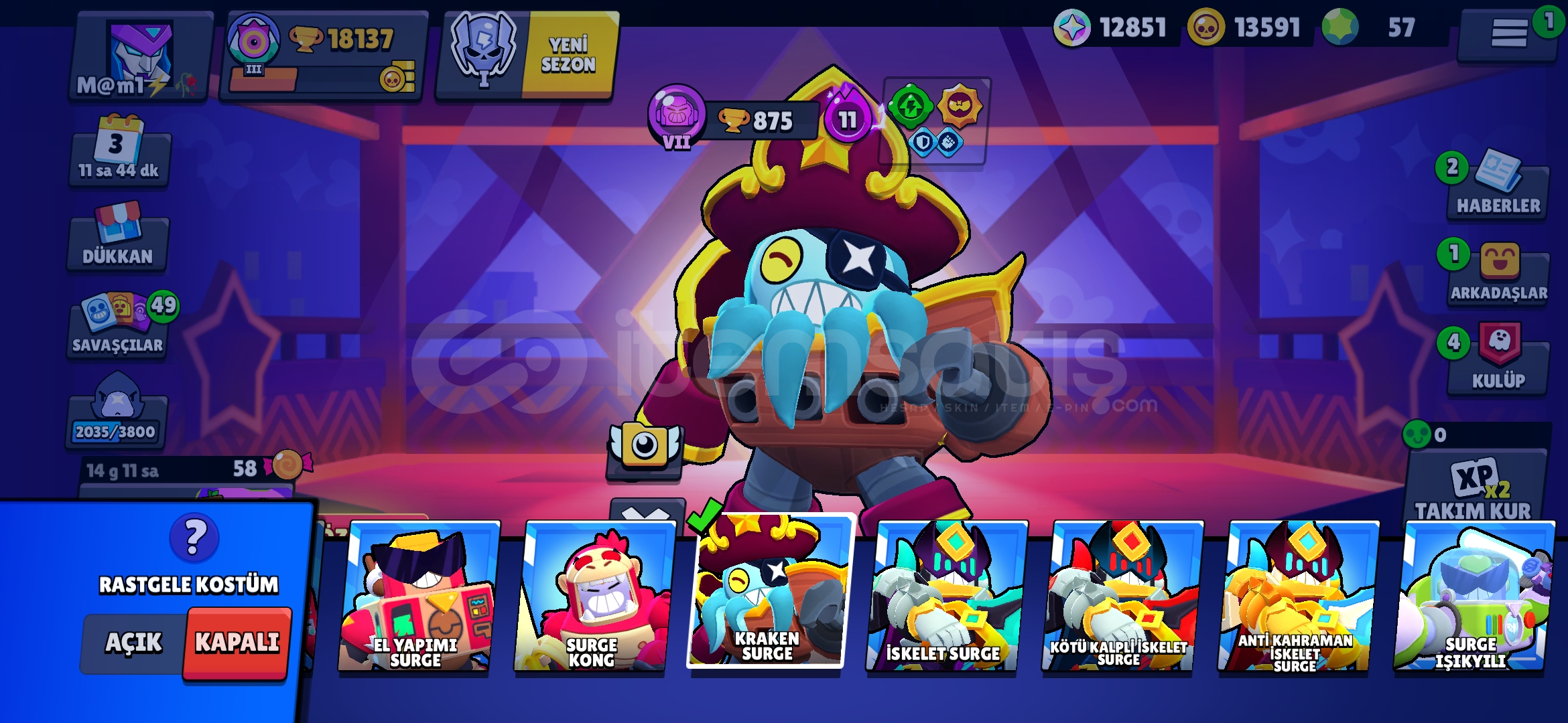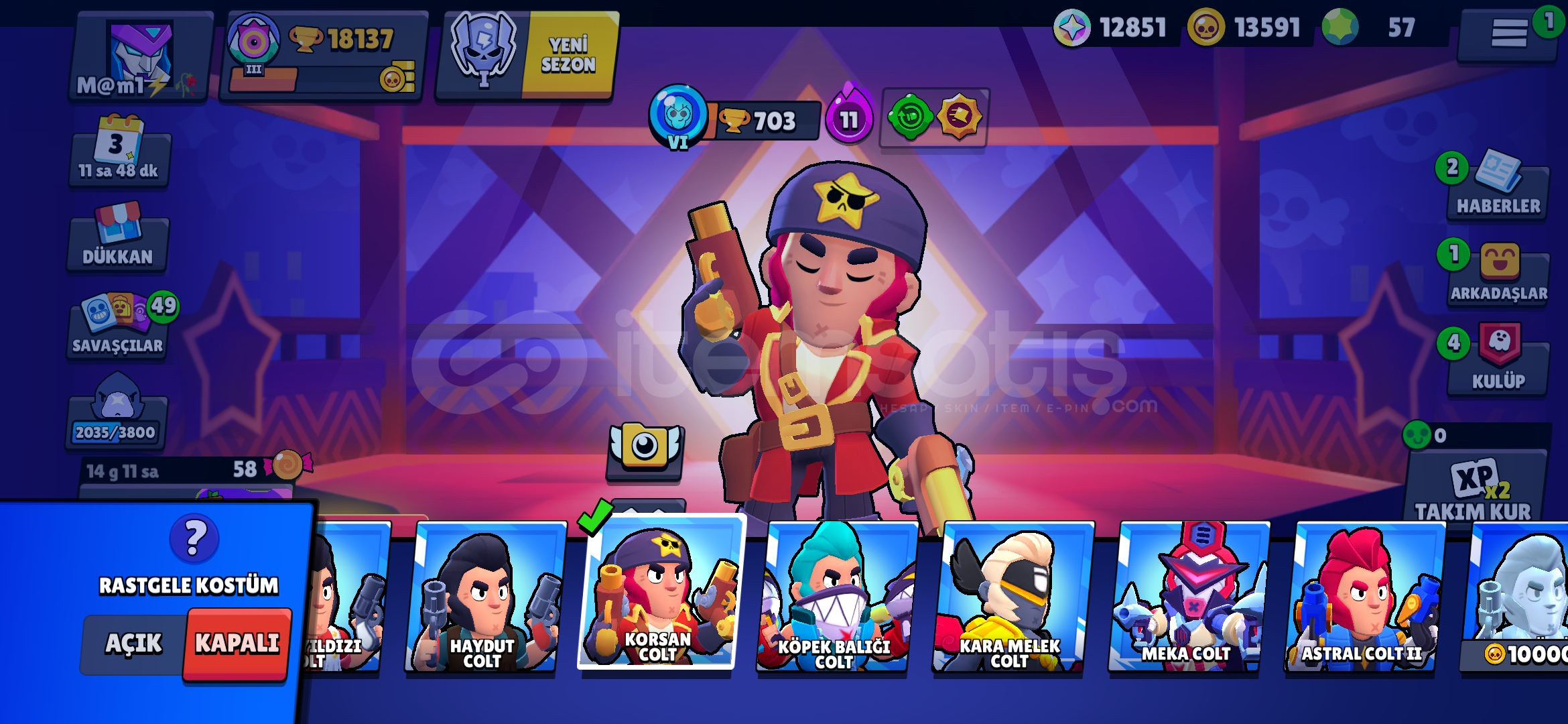 - BİR DEFA BRAWL PAS PLUS ALINMIŞTIR 18K KUPADADIR 68 KARAKTER 12K MÜCEVHER