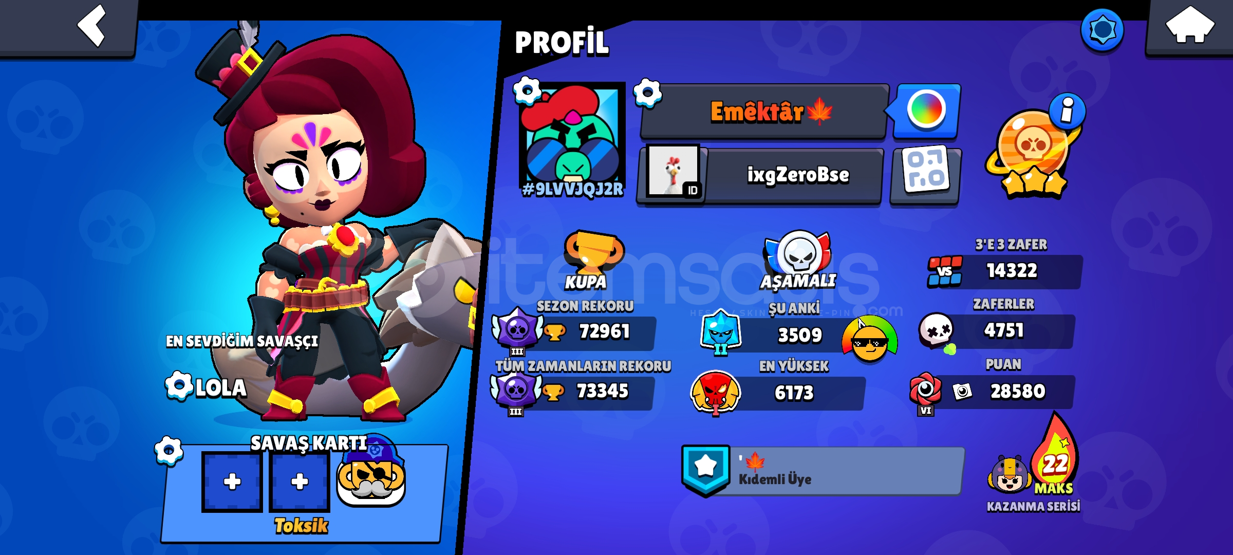 Mail değişim olacaktır 🔹 En Yüksek kuoa72456🔹 Güncel Kupa:72456🔹 3v3:14260🔹 Karakter Sayısı:94🔹 11 Seviye Sayısı:60🔹 Hiperşarj Sayısı 45🔹 Kaç 35 Rank:-🔹 Eski Sistem Pl Bilgisi: efsanevi 1🔹 2024 Master Sayısı: -🔹 2025 Master Sayısı:-🔹 Ünvan Sayısı (Bp\Ustalık):13 normal 5 bpp🔹 Şöhret: Sa...