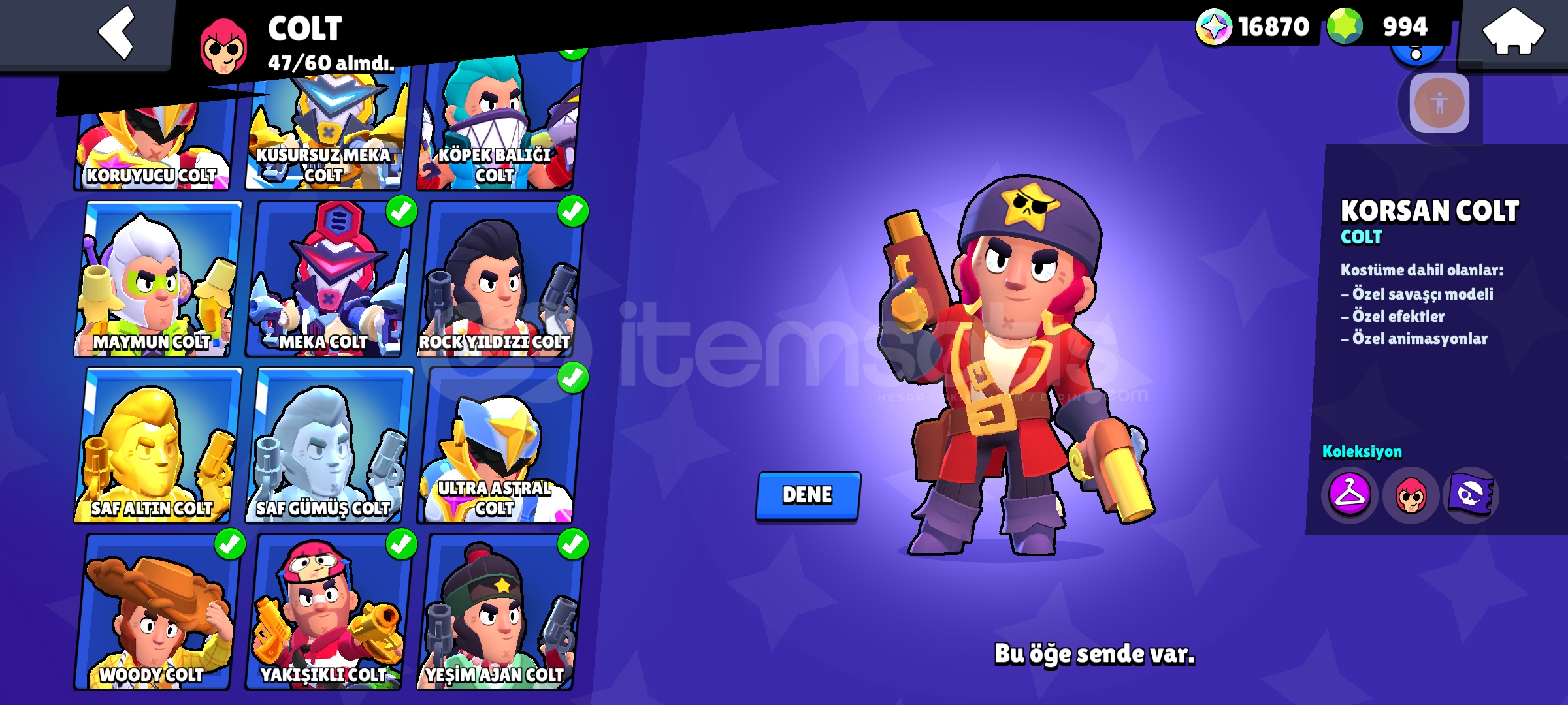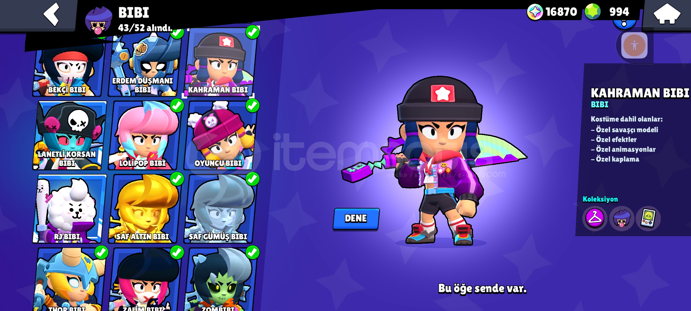 ✨ Prestijli, dolu dolu bir Brawl Stars hesabı!📌 Hesap Özellikleri:💎 994 Elmas💰 81.000 Altın🎟️ Plus açılmış, Colt Pro Pass alınmış💠 16.000 Mücevher Puanı👑 Kahraman Bibi ve birçok satılmayan/dönemsel kostüm (20+ adet)🔥 Prestijli karakterler müsait olmadığım için geç dönebilirim kusura bakmayın⚡ Uz...