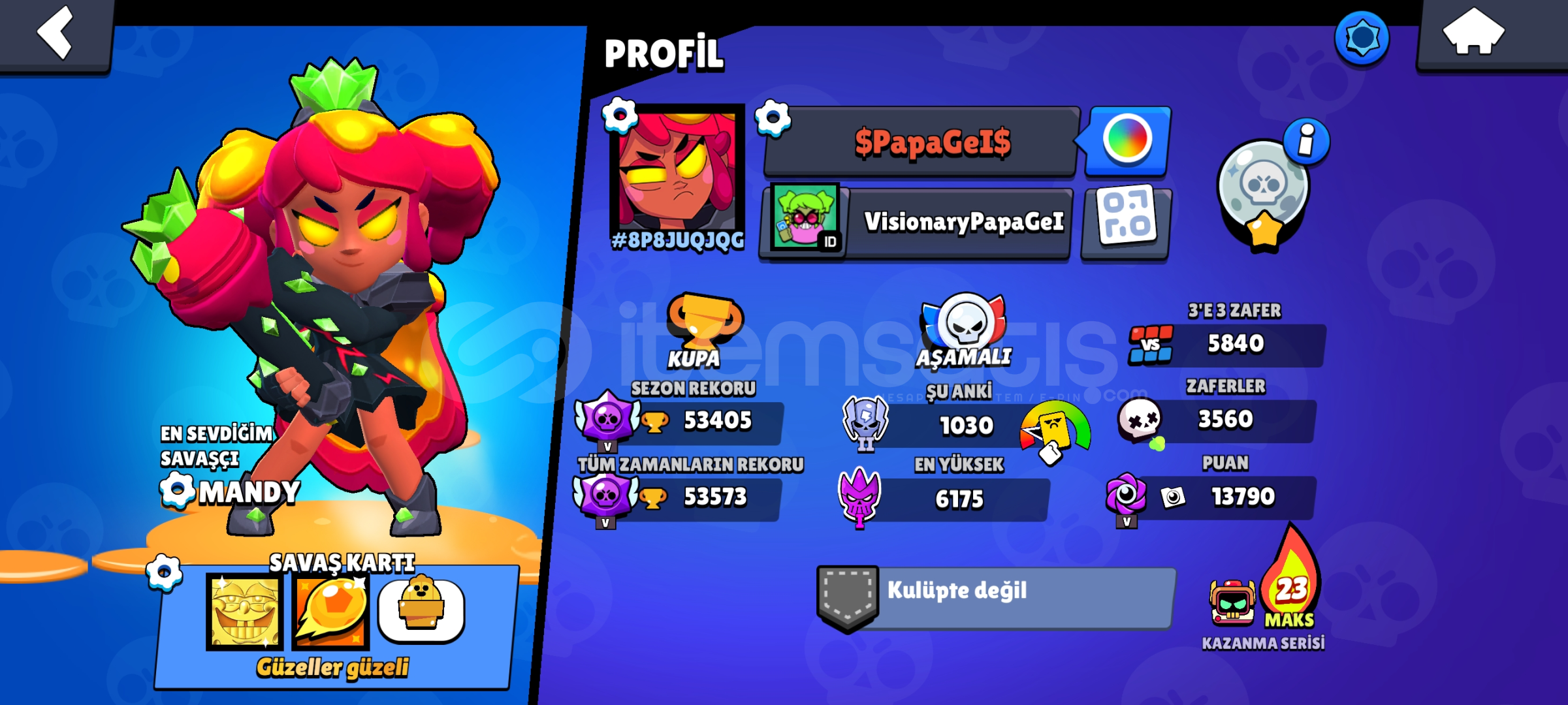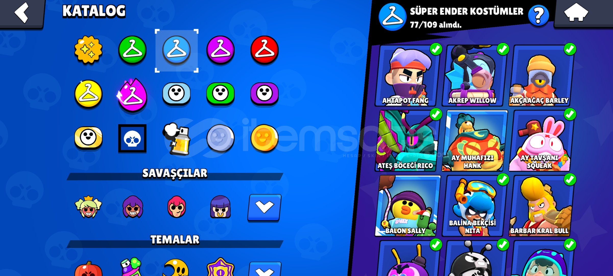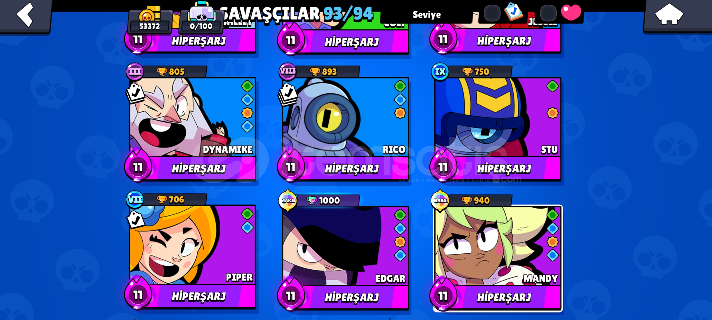MERHABA ARKADAŞLAR HESABINIZIN ÖZELLİKLERİ ŞU ŞEKİLDEDİR ;hesapta son gelen karakter hariç bütün karakterler vardır 20 adet karakter ful ve hipersarji KULLANILABİLİR ve daha birçok karakterde HİPERSARJ var 11 seviye yapıp kullanabilirsinizhesapta 200 den fazla kostüm bulunur 6 tane efsanevi kostüm vardır 4 defa brawl pas açılmıştır bunlardan biri normal diğerler...