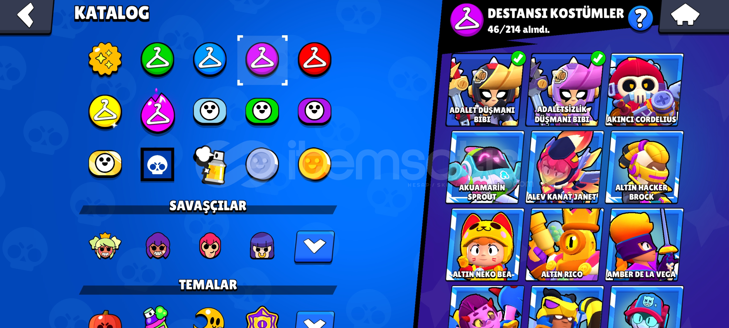 hesapta 200 den fazla kostüm bulunur 6 tane efsanevi kostüm vardır 4 defa brawl pas açılmıştır bunlardan biri normal diğerleri pahalı olandır