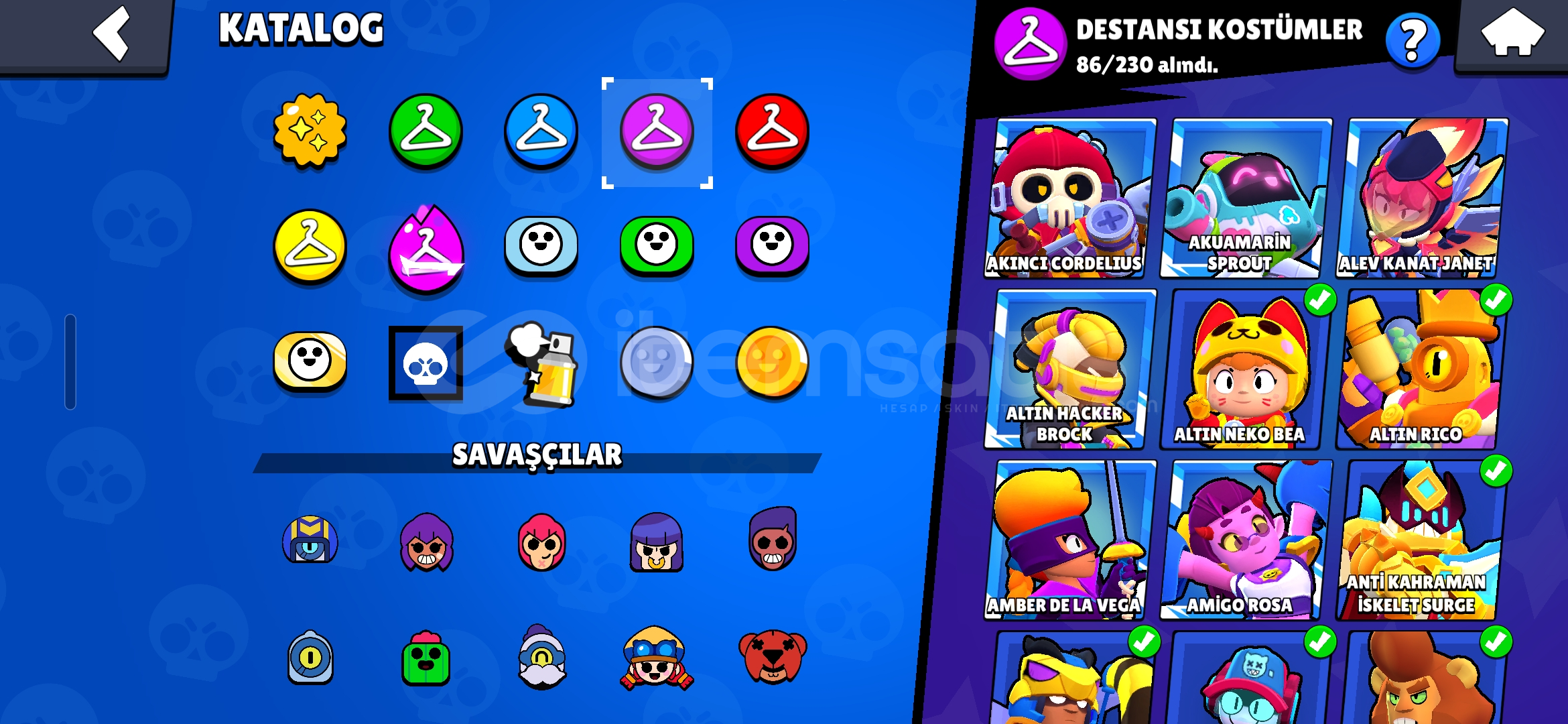 Hesapta bol kostüm vardır kostümler değerlidir. Ciddi alıcıya pazarlık yapılır. Hesapta koruma yoktur. Gönül rahatiyla alabilirsiniz.