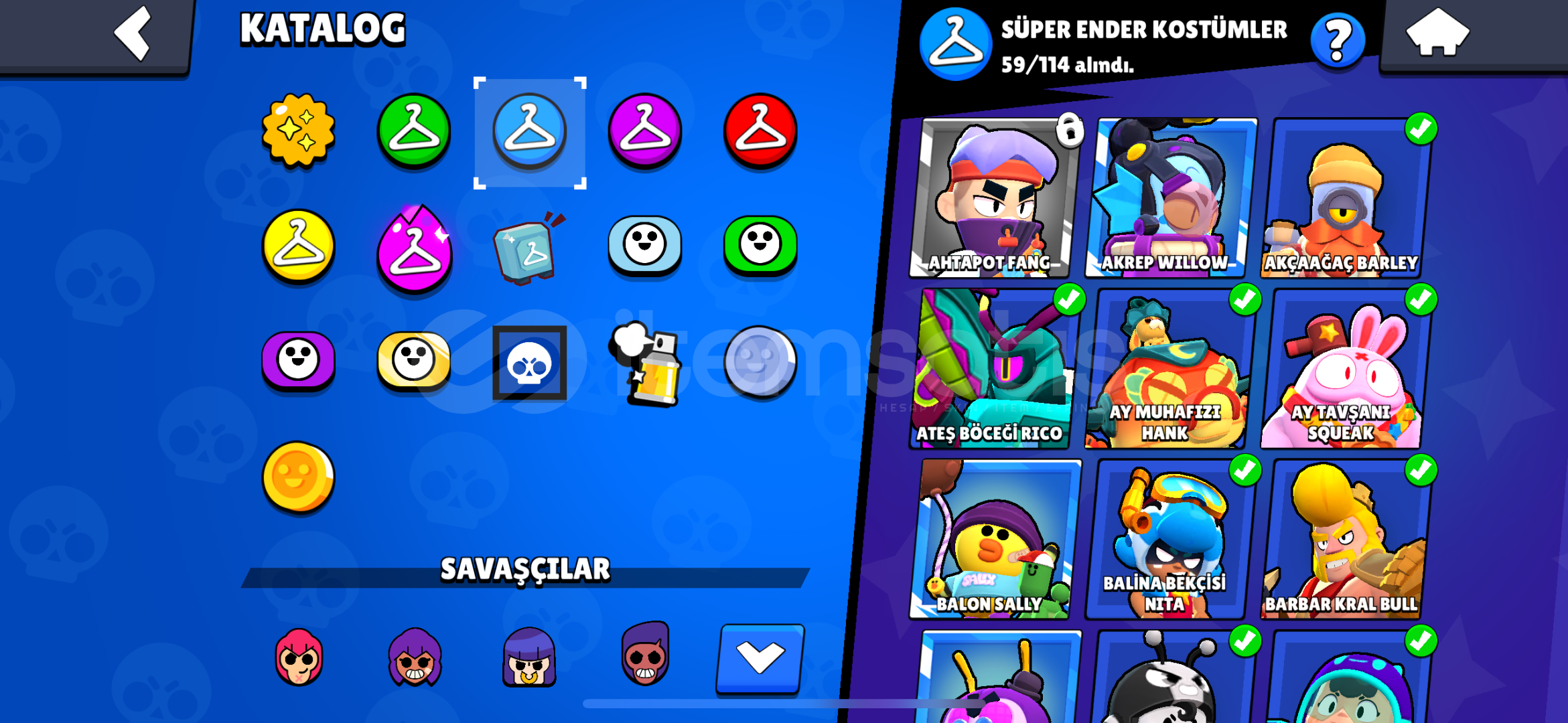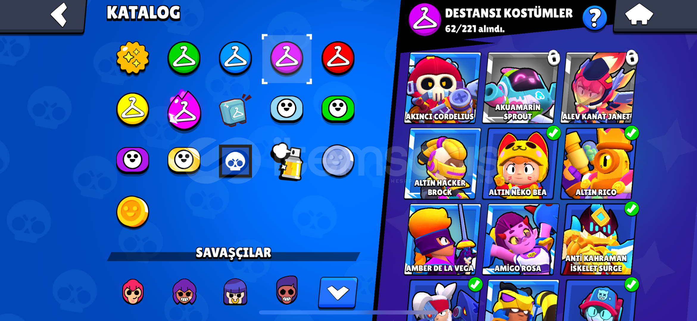 Hesabın kupası 35K’dır. Hesap içerisinde 79 karakter vardır. Hesap içerisinde;66 Ender59 Süper Ender62 Destansı5 Gizemli13 Efsanevi3 Hiperşarjlostğm vardır.mail değişikliği yapılmaktadır. Hesapta telefon numarası bağlı değildir, almadan önce mesaj atmayı unutmayın. Alan kişiye şimdiden hayırlı olsun