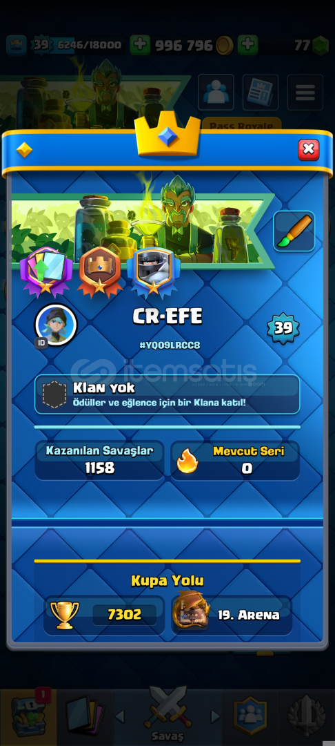 BOMBA HESAP 84K+7K Clash Royale Acil Satılık