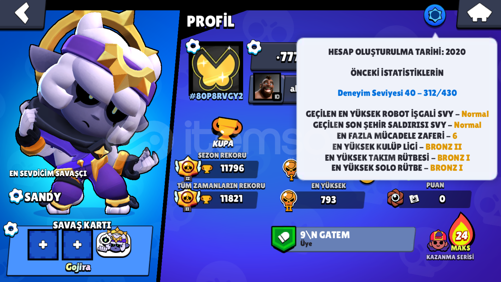 ⭐BP Alınmış 11.796 Kupa 50Karakter 2020Hesabı⭐