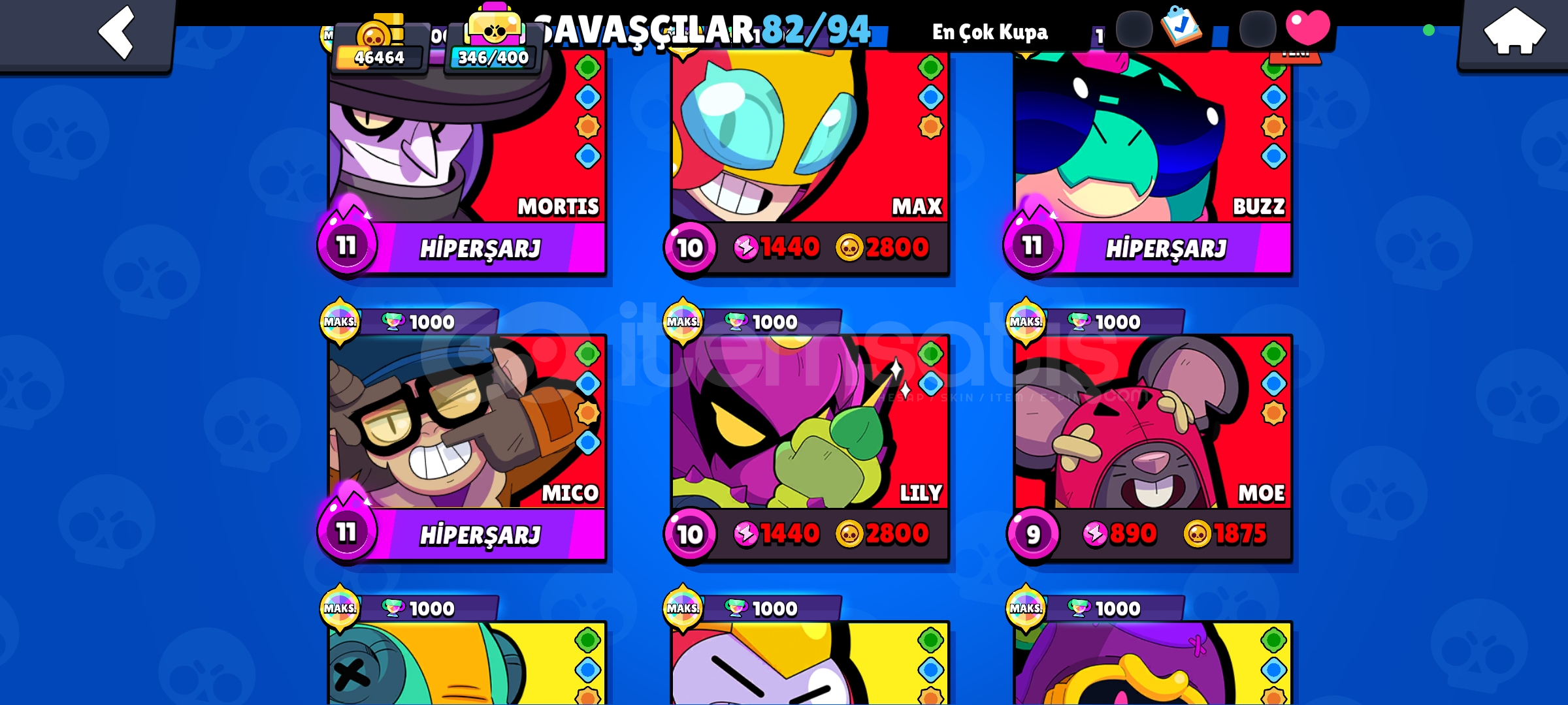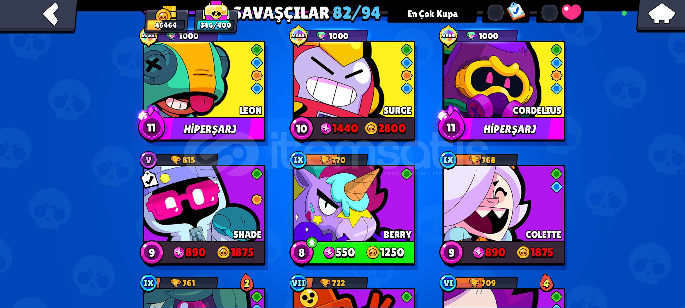 47 000 bin kupa 84 karakter 27 bin kupa karakterli 2 efsanevi kostüm 2 gizemli kostüm 70 destansı 65 süper ender 72 ender kostüm 9 brawl pass acıldı 4 ü pluss son acılmayan 1 efsanevi karakter acık degil draco tek acık deil
