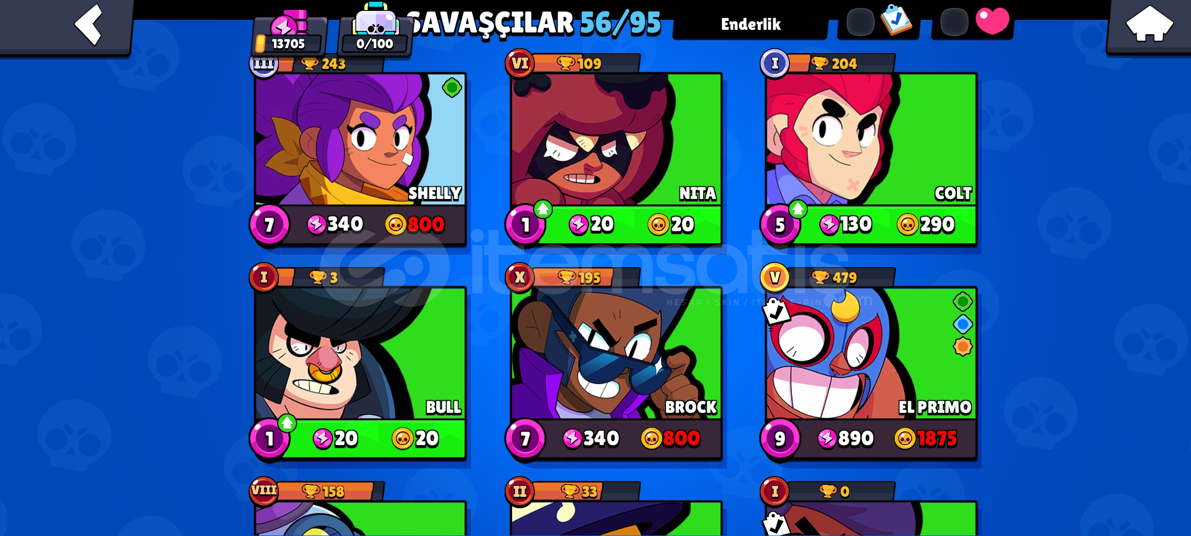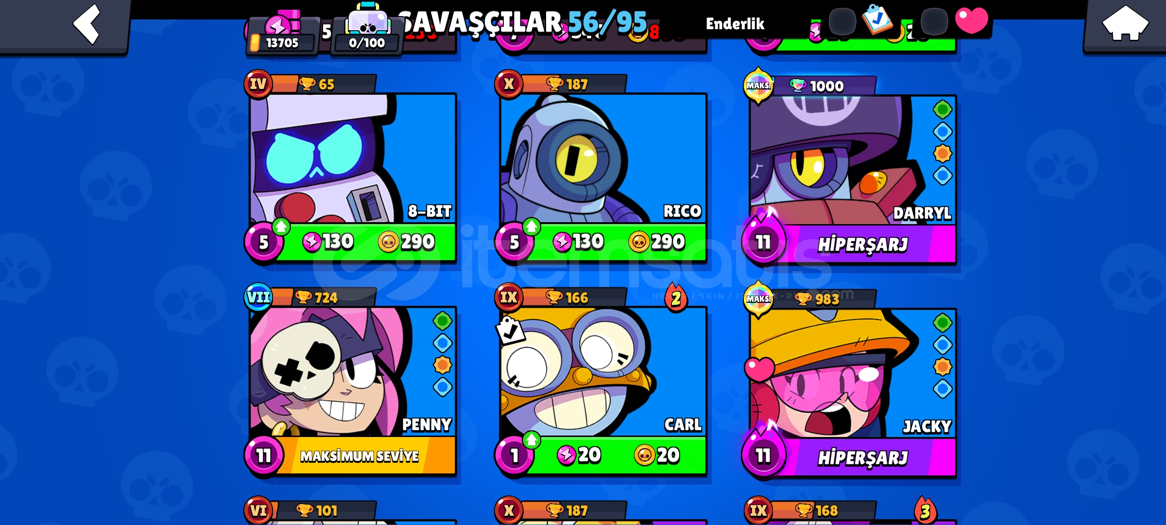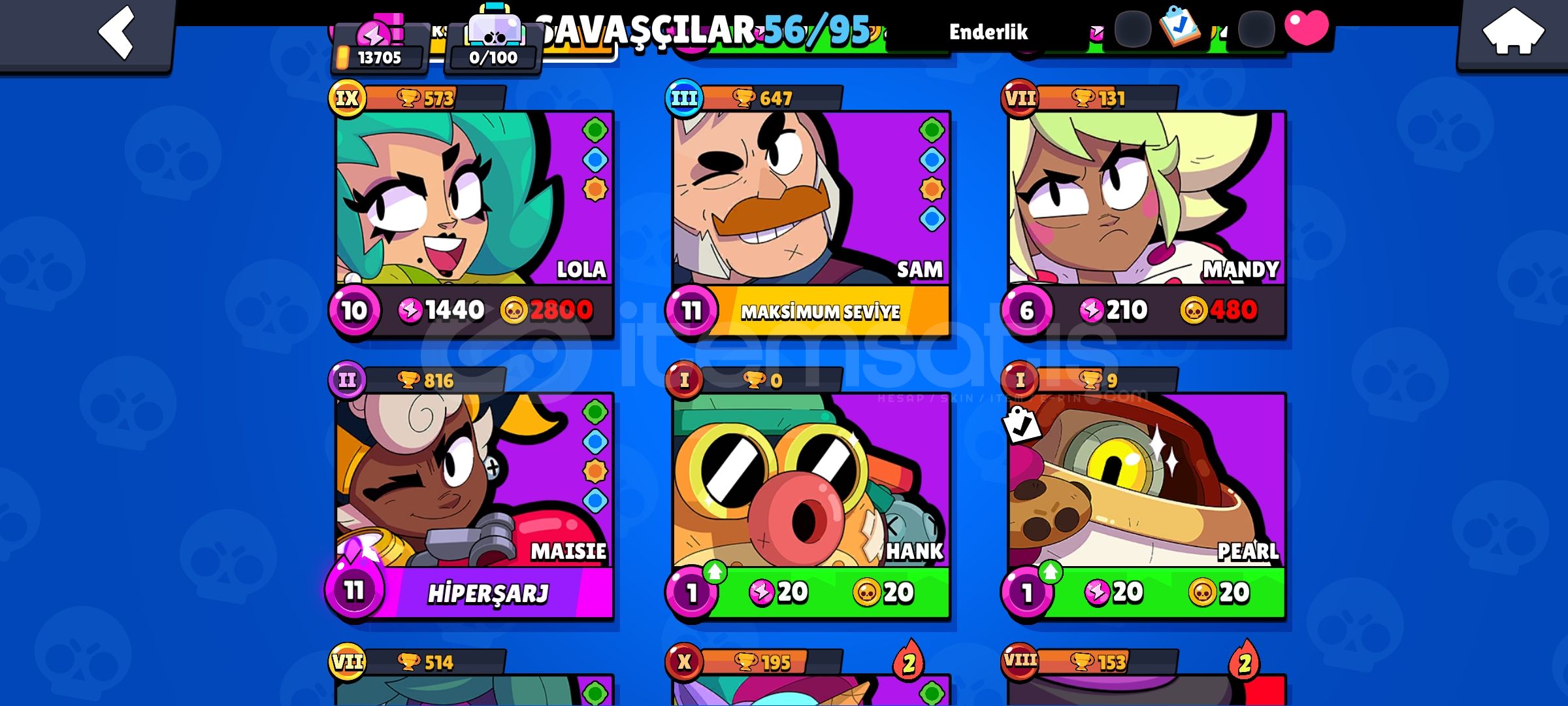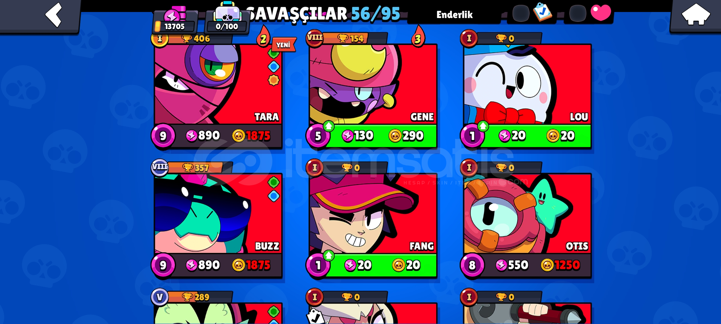 Hesapta bir çok karakter full seviyeli bir çoğu hiperşarjlı bir çok rozet ve 13.000 kupa vardır