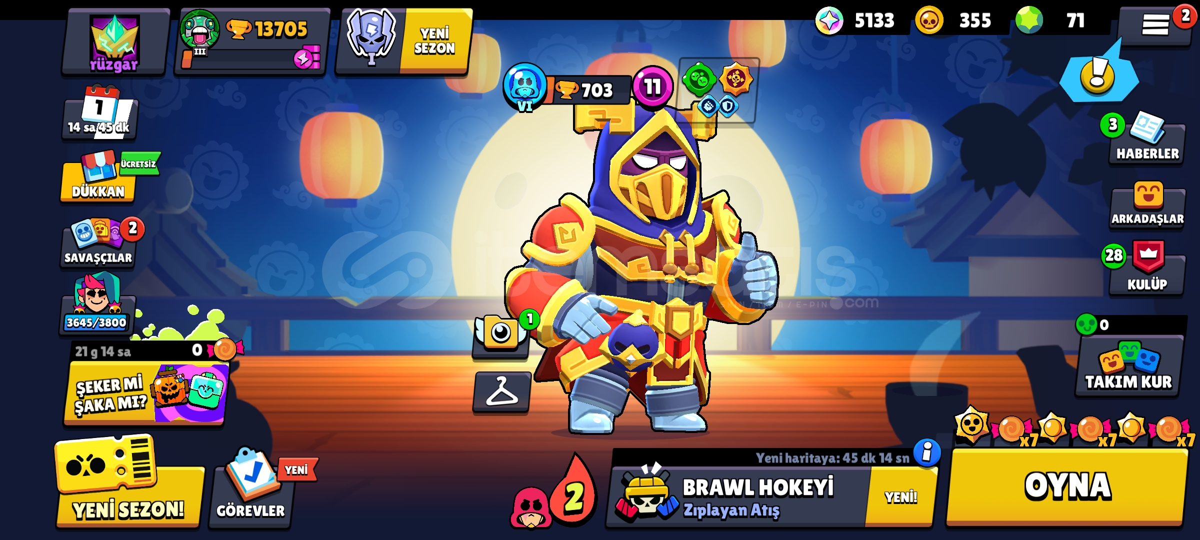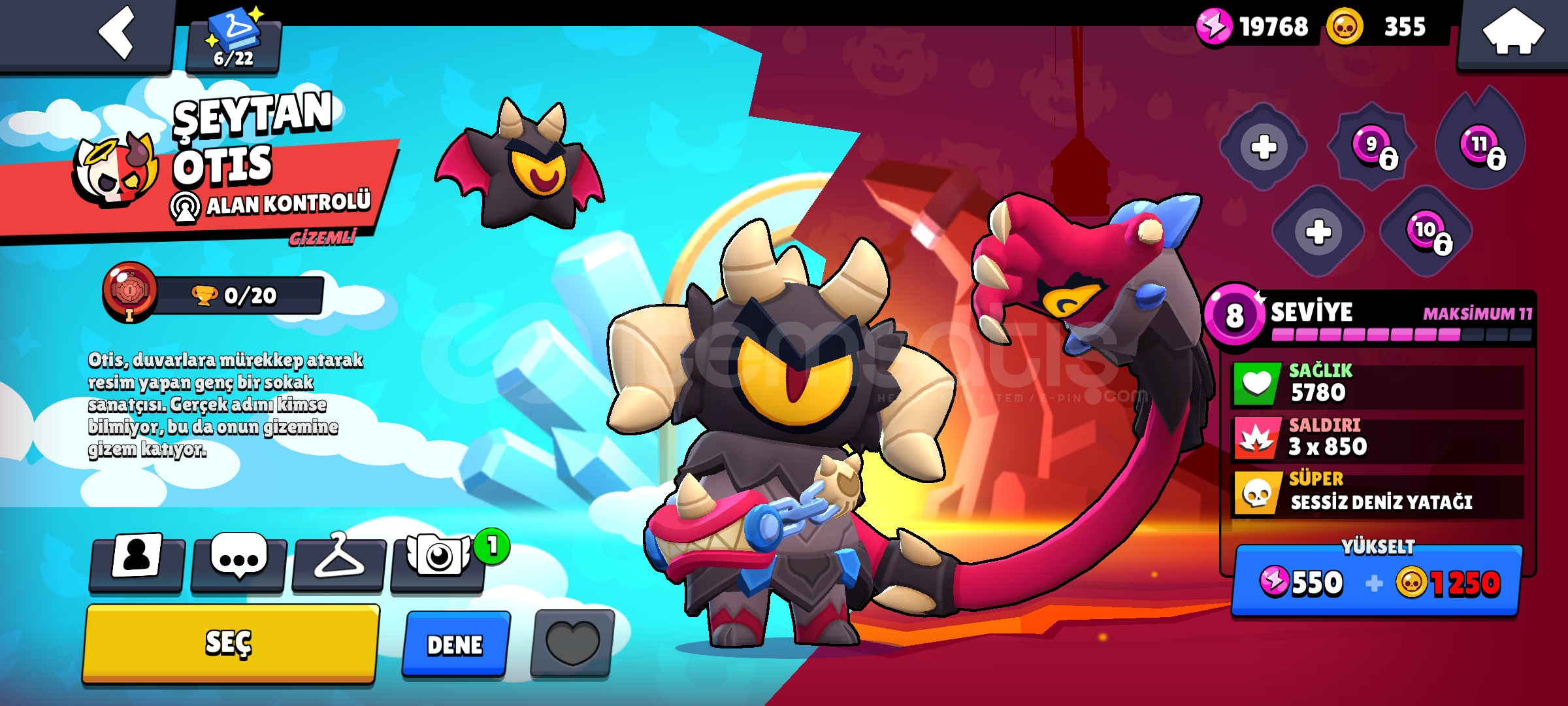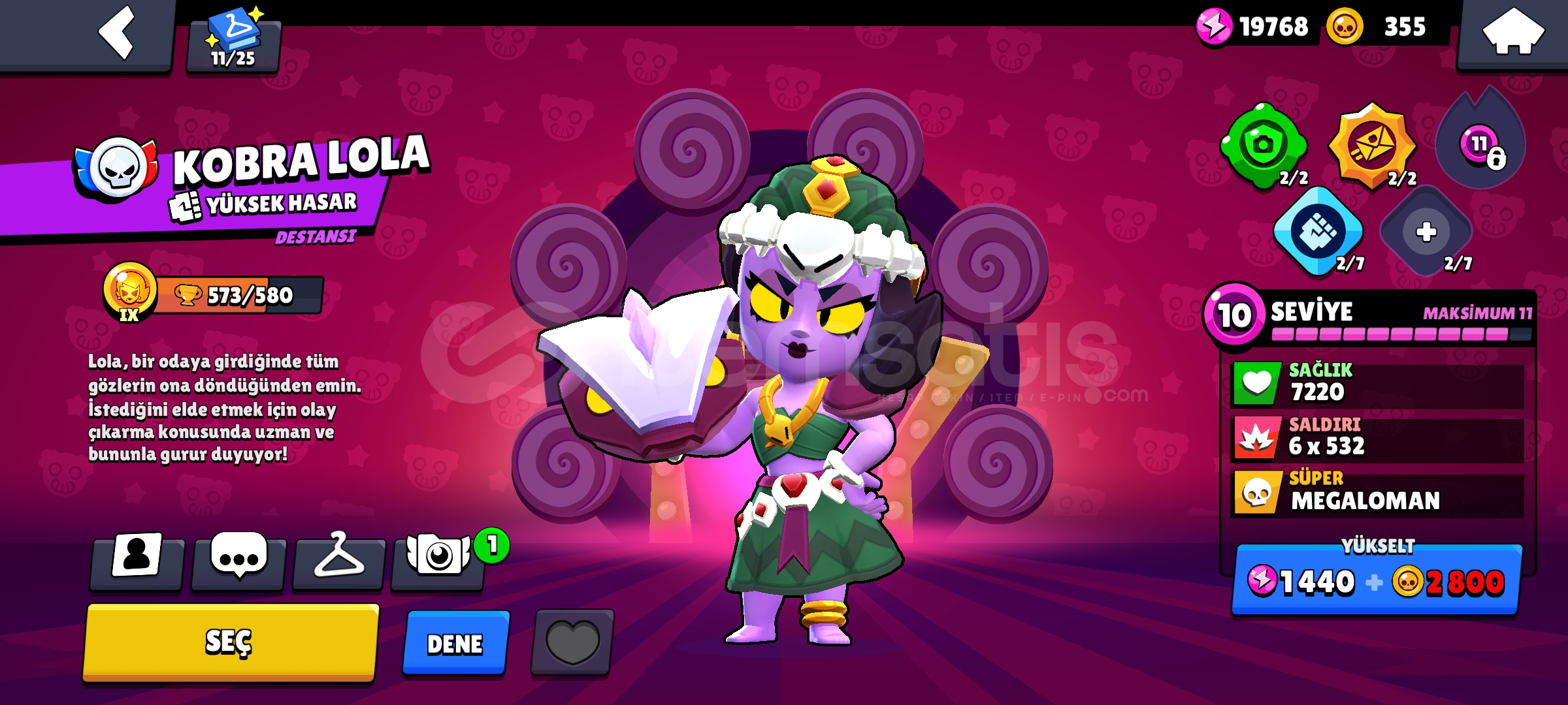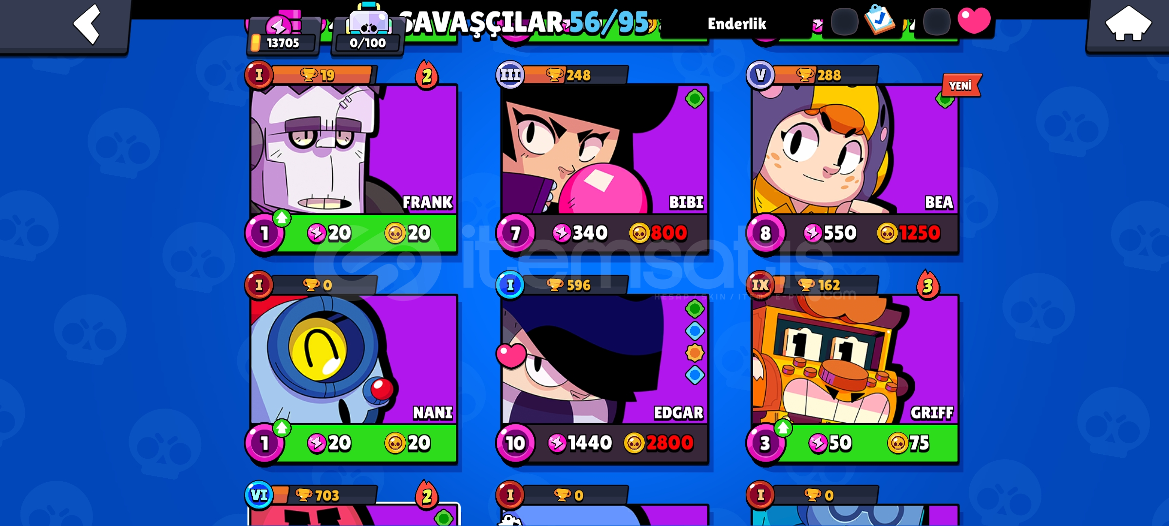 Hesapta bir çok karakter full seviyeli bir çoğu hiperşarjlı bir çok rozet ve 13.000 kupa vardır