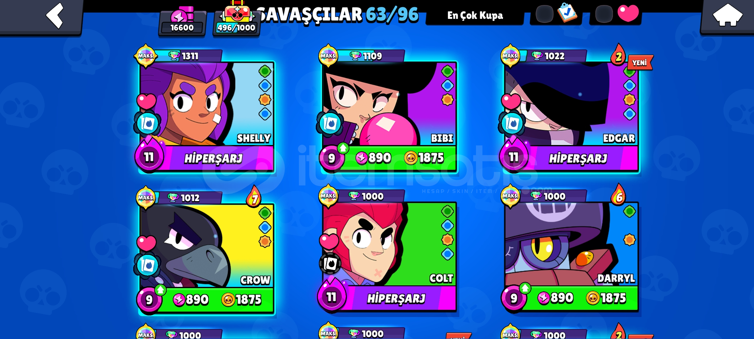 Hesapta 37 ender, 33 süper ender, 35 destansı, 55 gizemli, 3 efsanevi, 2 hiperşarj ve 1 tane de saf altın kostüm vardır. Hesapta 10 tane 1k karakter, 19356 mücevher, 9010 altın ve 279 elmas vardır, hesaptaki toplam karakter sayısı 63'tür. Detaylı video için dmden yazabilirsiniz, alıcısına maili ile birlikte teslim edilir, fiyatta kısmi pazarlık olur.