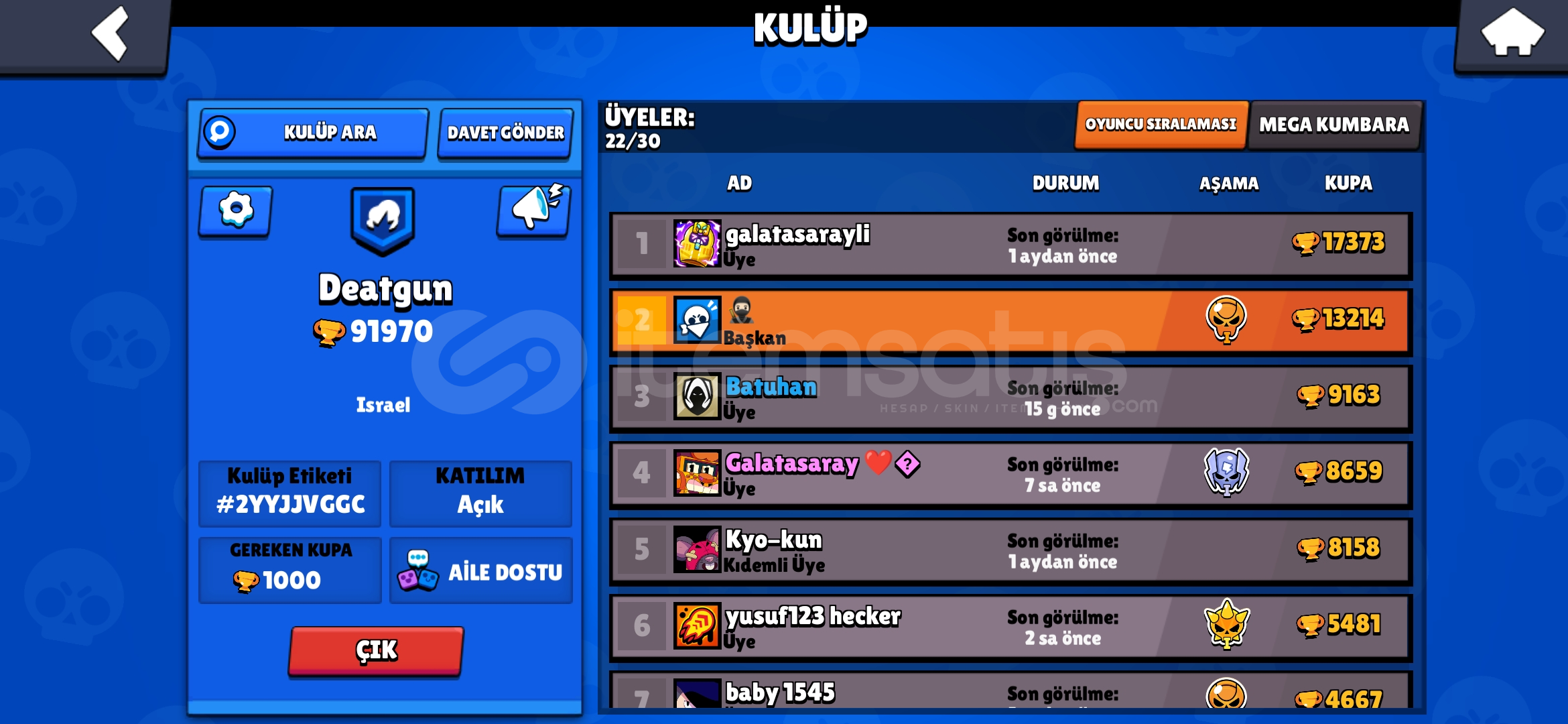 Brawl Stars 13k Kupalı 50Karakter Hoş Hesap