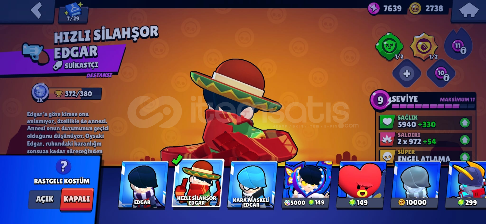 anında teslim mail ile birlikte hafta içi saat:16.00 dan sonra bakarım çoğu karakterde skin mevcuttur