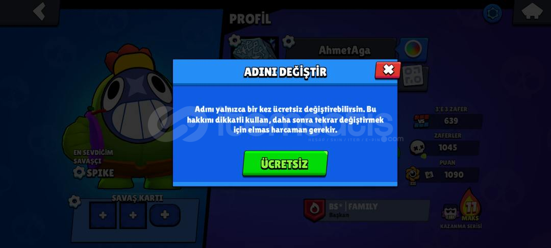 İSİM DEĞİŞME HAKKI ÜCRETSİZ OLARAK VARDIR (OYUN İÇİ İSMİ)