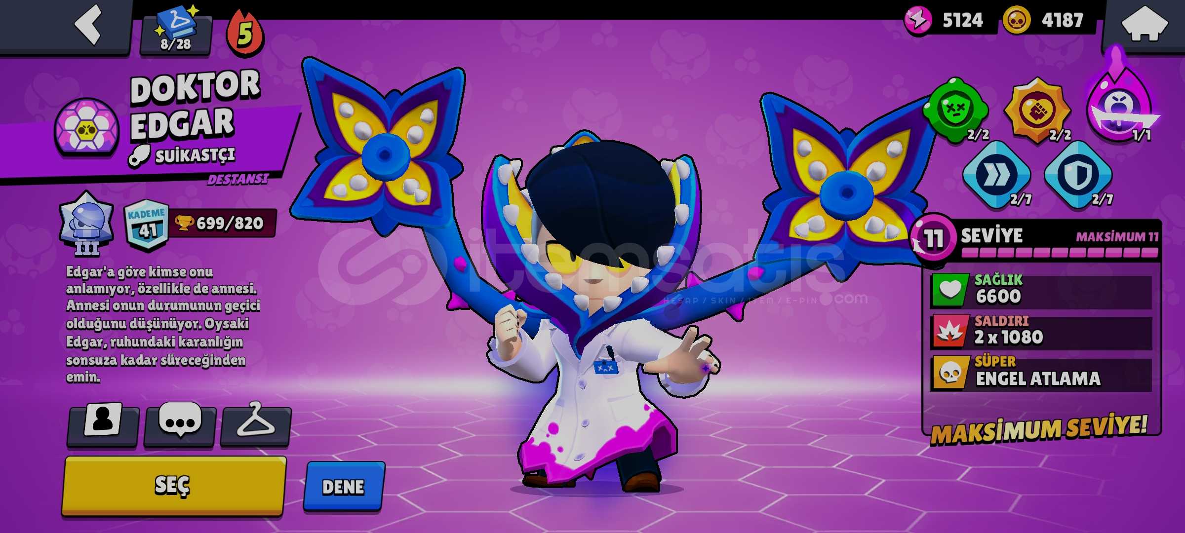 Hesap ta 28 kostüm vardırHesap 14874 kupadırHesapta 34 taş vardır41 savaşçı vardır3 efso karakter9 gizemli karakter10 destansı karakter vardırHesap mail değişimi ile verilecektirİyi alışverişler . . .